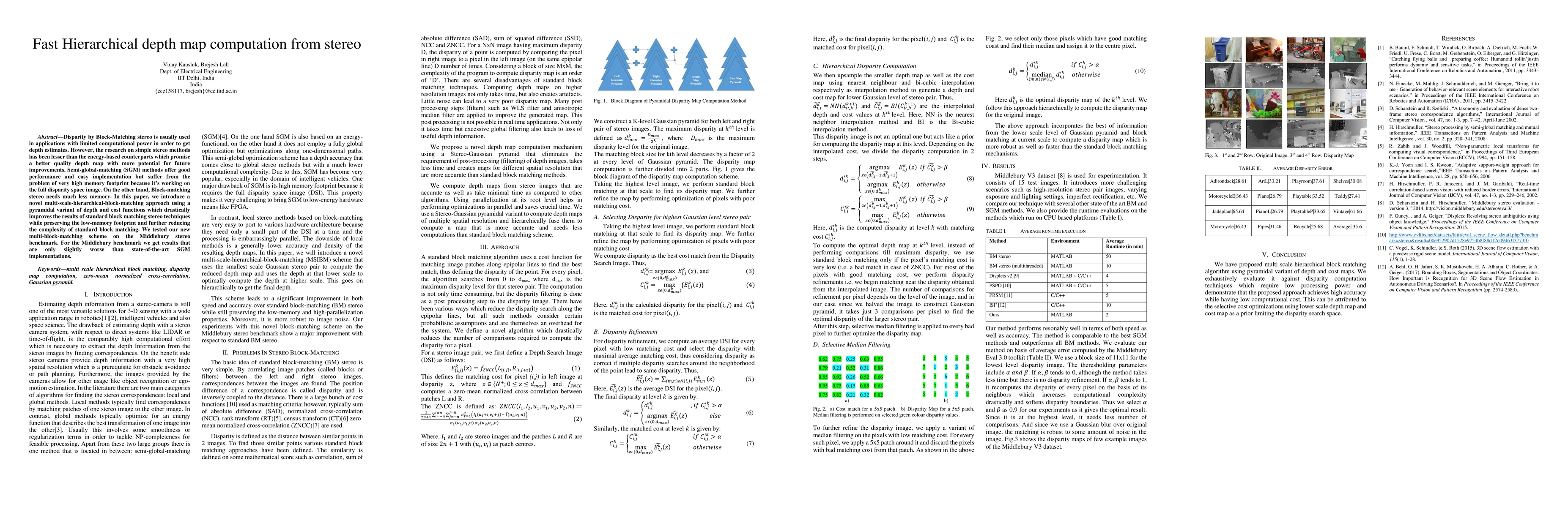 A new stereo depth estimation method using multi-scale hierarchical block-matching improves results while maintaining low memory footprint, rivaling state-of-the-art SGM implementations.