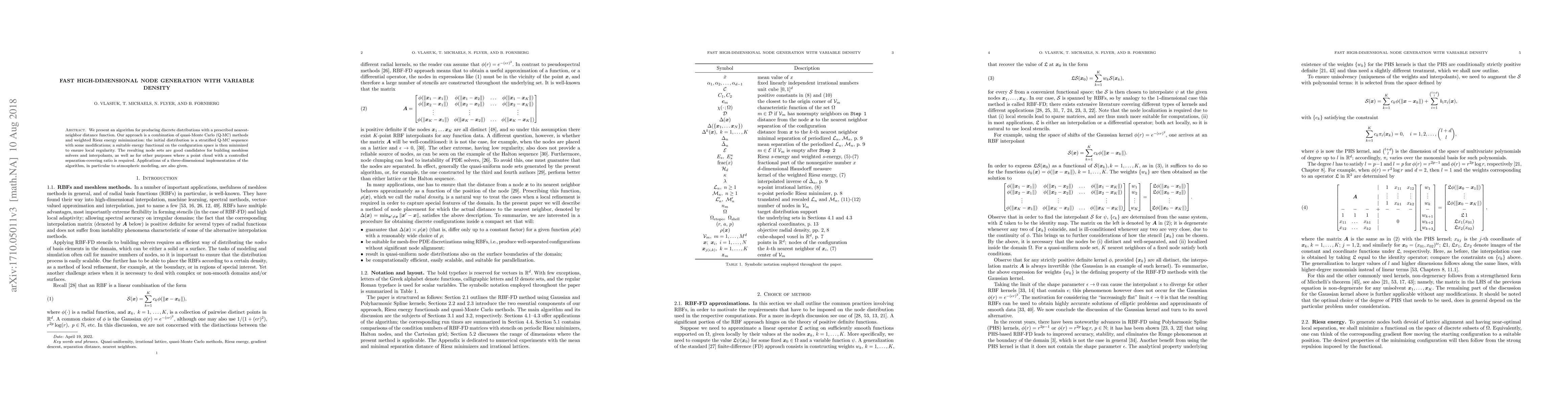 The paper presents an algorithm for generating discrete distributions with a controlled separation-covering ratio, combining quasi-Monte Carlo methods and weighted Riesz energy minimization. It provides a new approach to building meshless solvers and interpolants.