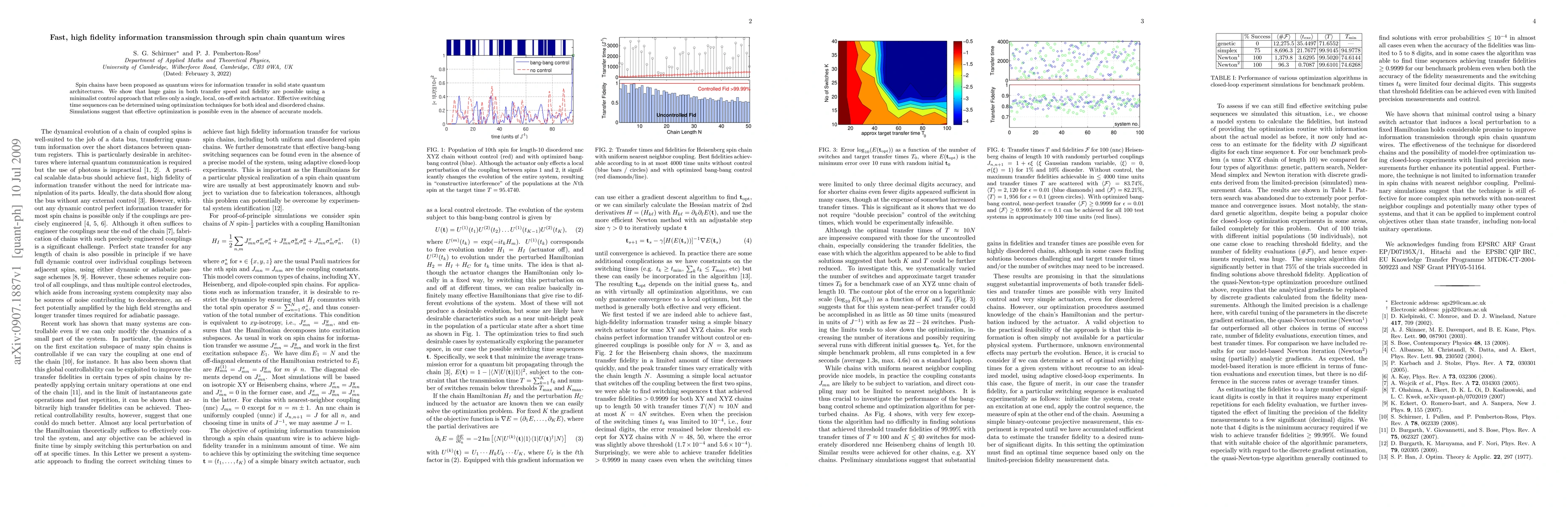 The development of a quasi-Newton-type algorithm for optimizing switching times in spin chain quantum wires with limited precision measurements.