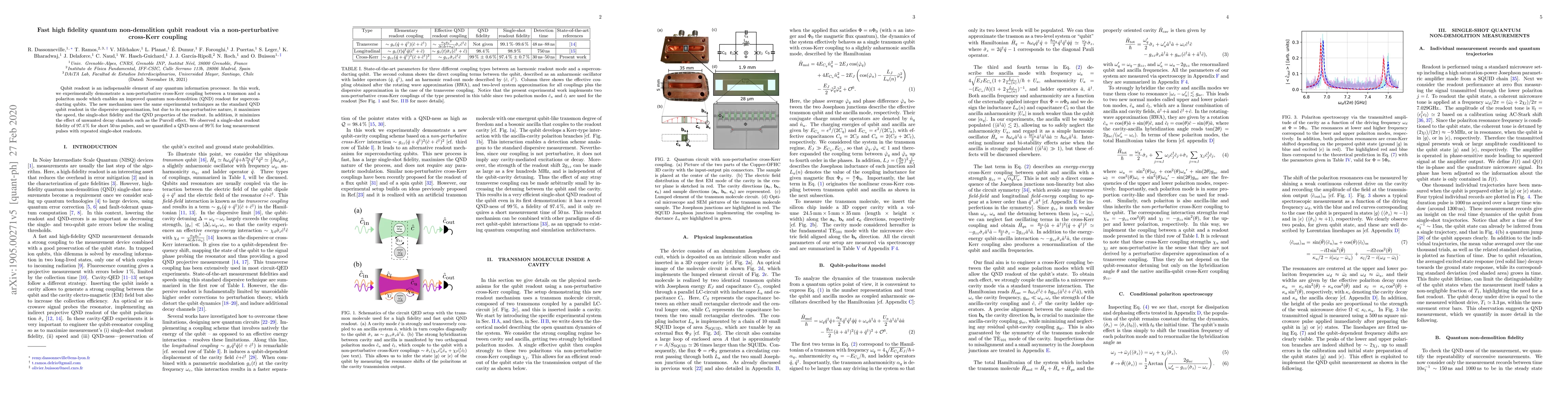 Qubit readout is an indispensable element of any quantum information processor. In this work, we experimentally demonstrate a non-perturbative cross-Kerr coupling between a transmon and a polariton mode which enables an improved quantum non-demolition (QND) readout for superconducting qubits. The new mechanism uses the same experimental techniques as the standard QND qubit readout in the dispersive approximation, but due to its non-perturbative nature, it maximizes the speed, the single-shot fidelity and the QND properties of the readout. In addition, it minimizes the effect of unwanted decay channels such as the Purcell effect. We observed a single-shot readout fidelity of 97.4% for short 50 ns pulses, and we quantified a QND-ness of 99% for long measurement pulses with repeated single-shot readouts.