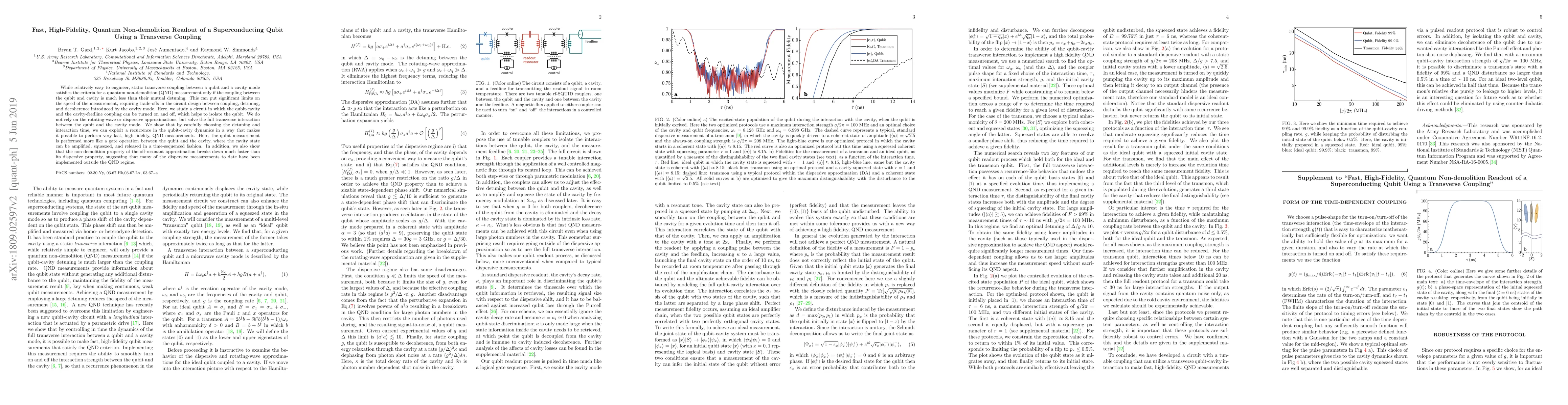 This paper presents a method for fast, high-fidelity quantum non-demolition (QND) readout of a superconducting qubit using transverse coupling, overcoming limitations of traditional static coupling. The proposed circuit design allows for precise control over qubit-cavity interactions, enabling rapid and accurate measurements without compromising the qubit's state.