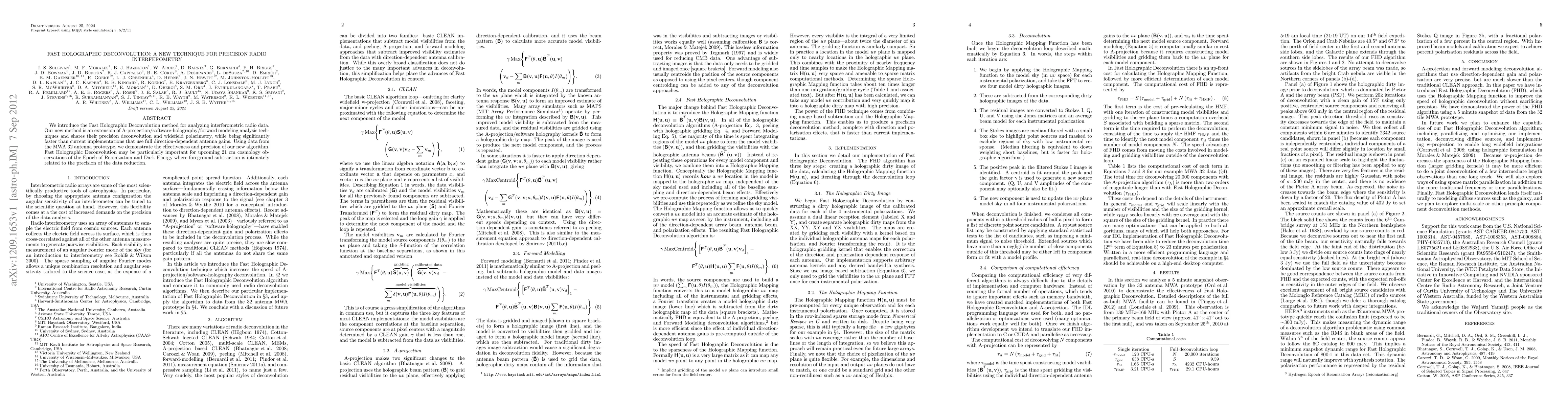 The Fast Holographic Deconvolution method offers a faster alternative to current radio interferometry techniques, achieving precision deconvolution and widefield polarimetry while significantly reducing computational time. Demonstrated with MWA 32 antenna data, it promises enhanced precision for upcoming 21 cm cosmology observations.