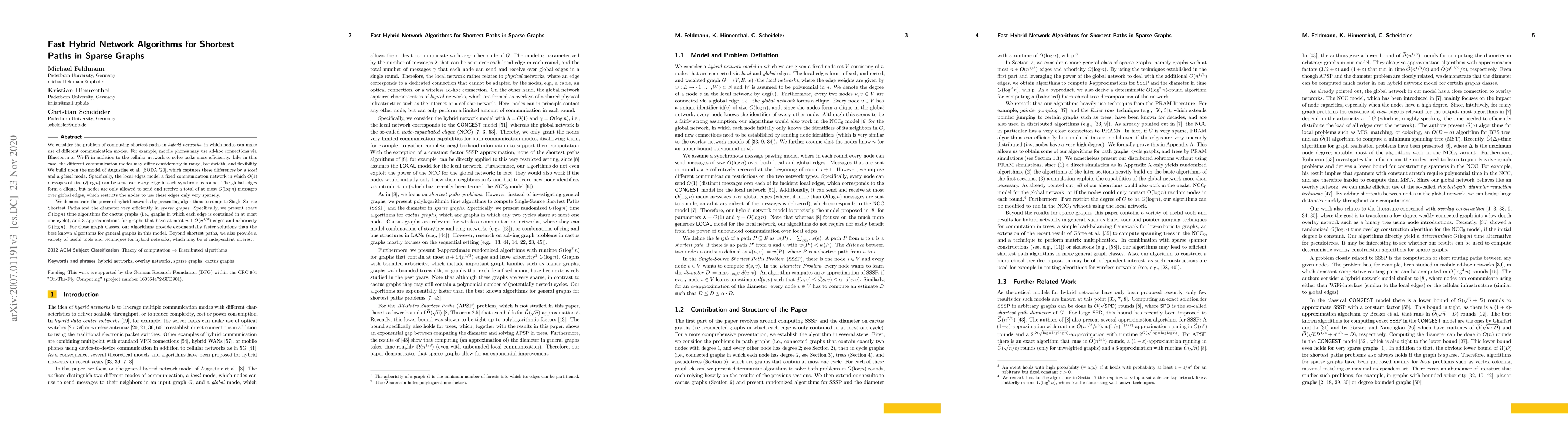 This paper presents efficient algorithms for computing shortest paths in hybrid networks, where nodes can utilize different communication modes. The authors introduce exact $O(\log n)$ time algorithms for cactus graphs and $3$-approximations for sparse graphs, providing significant improvements over general graph algorithms.