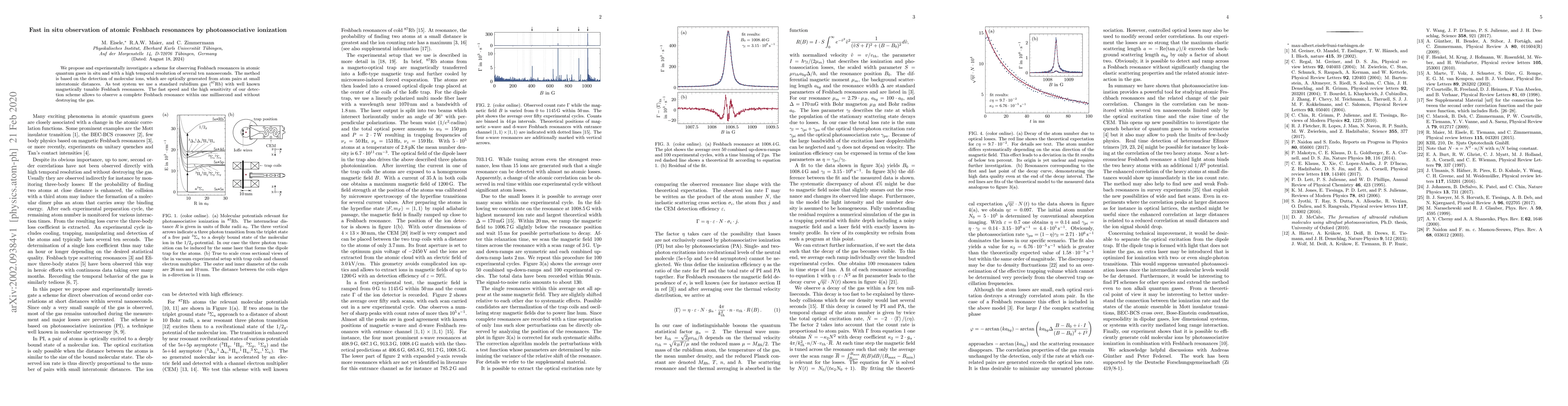 This paper proposes and demonstrates a high-resolution method for in situ observation of atomic Feshbach resonances in rubidium gas using photoassociative ionization, achieving temporal resolution in tens of nanoseconds and observing complete Feshbach resonances within a millisecond without disrupting the gas.