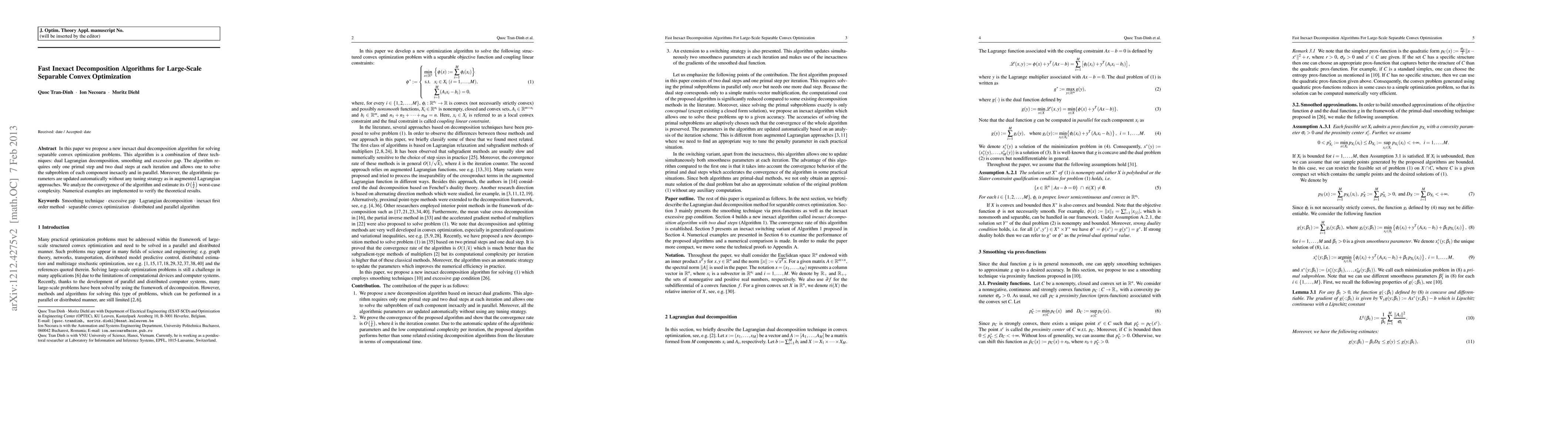 This paper introduces an inexact dual decomposition algorithm for large-scale separable convex optimization, combining dual Lagrangian decomposition, smoothing, and excessive gap. The algorithm efficiently solves subproblems in parallel and automatically updates parameters without tuning, achieving $O(\frac{1}{\varepsilon})$ complexity. Numerical examples validate the theoretical convergence analysis.