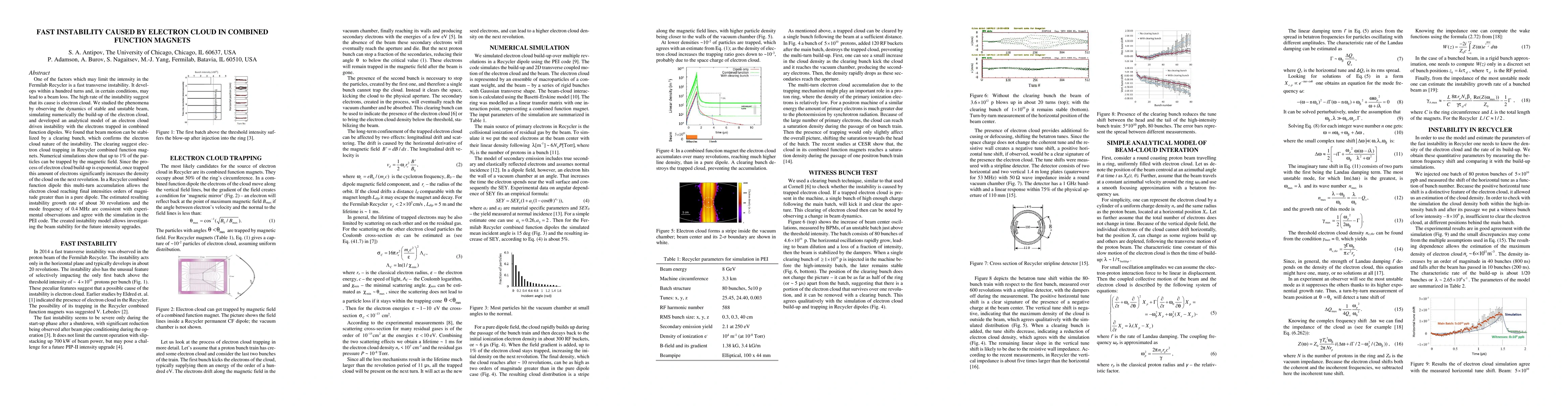 One of the factors which may limit the intensity in the Fermilab Recycler is a fast transverse instability. It develops within a hundred turns and, in certain conditions, may lead to a beam loss. The high rate of the instability suggest that its cause is electron cloud. We studied the phenomena by observing the dynamics of stable and unstable beam, simulating numerically the build-up of the electron cloud, and developed an analytical model of an electron cloud driven instability with the electrons trapped in combined function di-poles. We found that beam motion can be stabilized by a clearing bunch, which confirms the electron cloud nature of the instability. The clearing suggest electron cloud trapping in Recycler combined function mag-nets. Numerical simulations show that up to 1% of the particles can be trapped by the magnetic field. Since the process of electron cloud build-up is exponential, once trapped this amount of electrons significantly increases the density of the cloud on the next revolution. In a Recycler combined function dipole this multi-turn accumulation allows the electron cloud reaching final intensities orders of magnitude greater than in a pure dipole. The estimated resulting instability growth rate of about 30 revolutions and the mode fre-quency of 0.4 MHz are consistent with experimental observations and agree with the simulation in the PEI code. The created instability model allows investigating the beam stability for the future intensity upgrades.