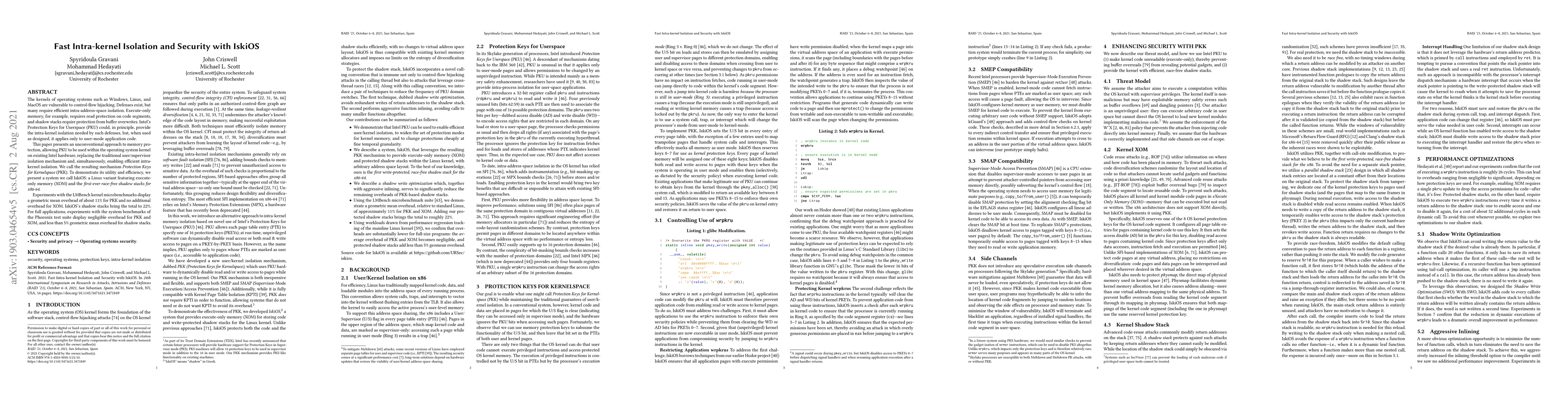 A new method called Protection Keys for Kernelspace (PKK) allows Intel's PKU to protect operating system kernels, improving security with minimal overhead, while also enabling efficient intra-kernel isolation.