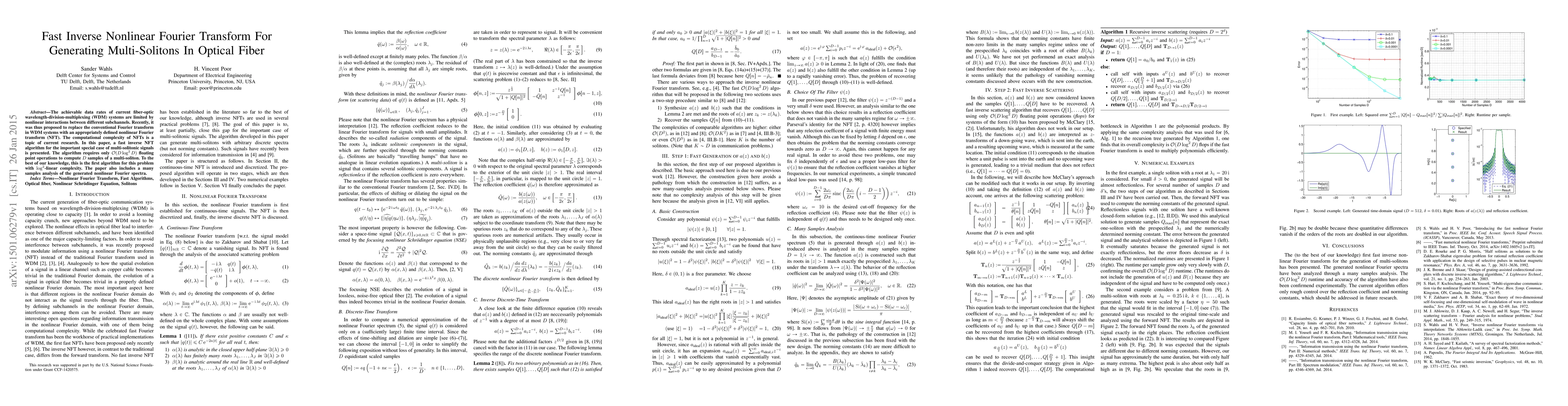 This paper presents a fast inverse nonlinear Fourier transform (NFT) algorithm for generating multi-soliton signals in optical fiber systems, achieving $\mathcal{O}(D\log^{2}D)$ complexity, significantly improving computational efficiency over previous methods. The algorithm also includes an analysis of the resulting nonlinear Fourier spectra.
