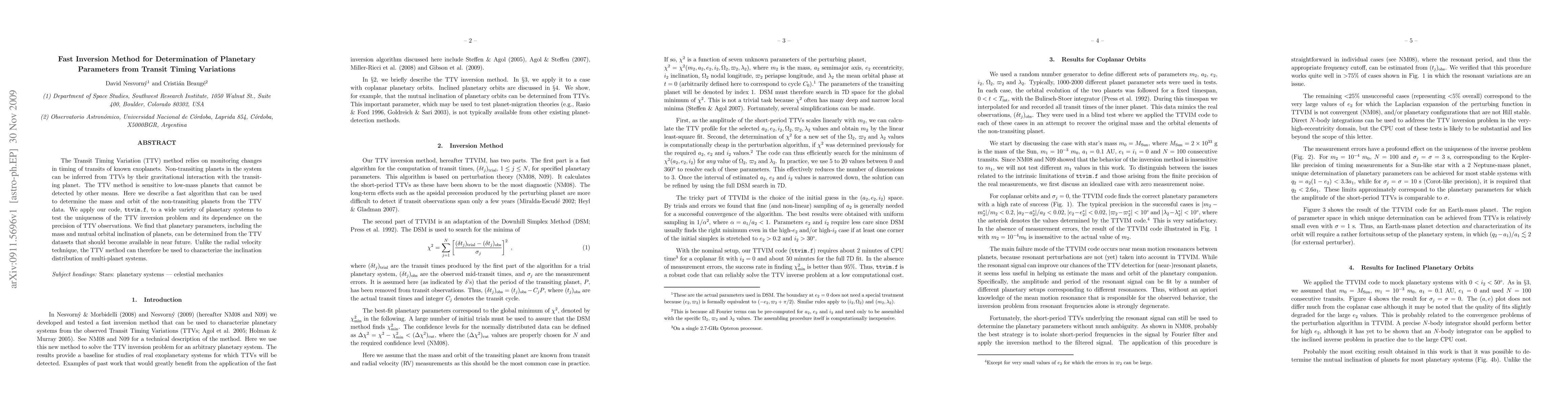 The Transit Timing Variation (TTV) method relies on monitoring changes in timing of transits of known exoplanets. Non-transiting planets in the system can be inferred from TTVs by their gravitational interaction with the transiting planet. The TTV method is sensitive to low-mass planets that cannot be detected by other means. Here we describe a fast algorithm that can be used to determine the mass and orbit of the non-transiting planets from the TTV data. We apply our code, ttvim.f, to a wide variety of planetary systems to test the uniqueness of the TTV inversion problem and its dependence on the precision of TTV observations. We find that planetary parameters, including the mass and mutual orbital inclination of planets, can be determined from the TTV datasets that should become available in near future. Unlike the radial velocity technique, the TTV method can therefore be used to characterize the inclination distribution of multi-planet systems.