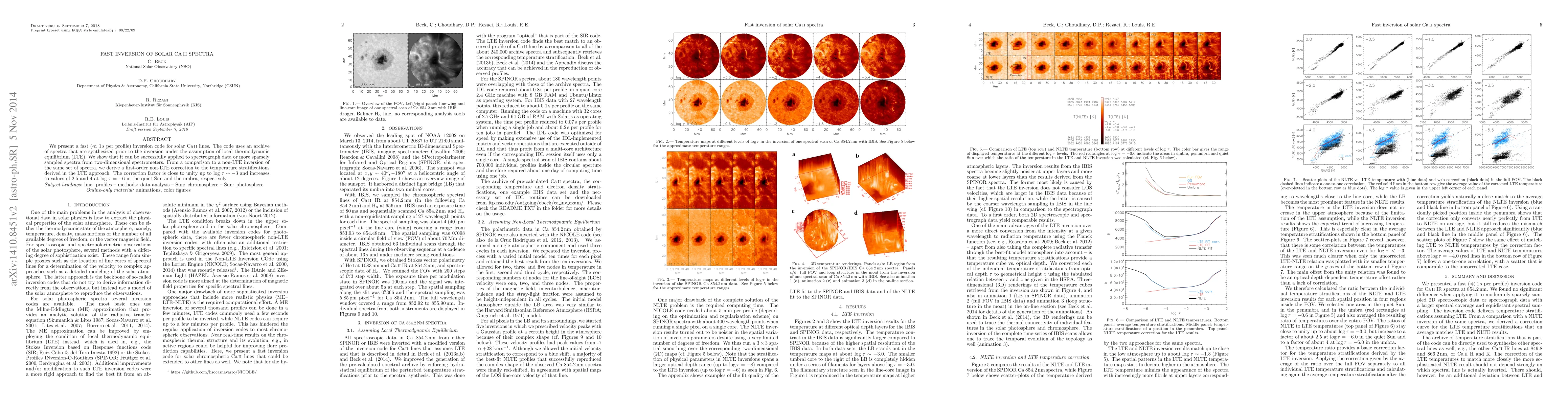 We present a fast (<< 1 s per profile) inversion code for solar Ca II lines. The code uses an archive of spectra that are synthesized prior to the inversion under the assumption of local thermodynamic equilibrium (LTE). We show that it can be successfully applied to spectrograph data or more sparsely sampled spectra from two-dimensional spectrometers. From a comparison to a non-LTE inversion of the same set of spectra, we derive a first-order non-LTE correction to the temperature stratifications derived in the LTE approach. The correction factor is close to unity up to log tau ~ -3 and increases to values of 2.5 and 4 at log tau = -6 in the quiet Sun and the umbra, respectively.