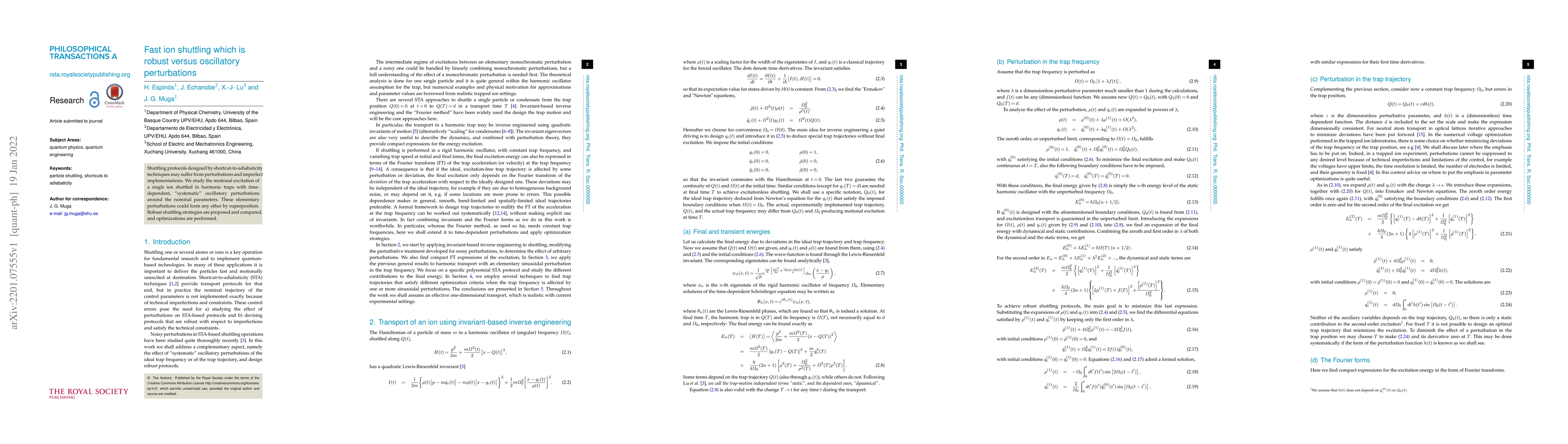 Researchers studied the impact of oscillatory perturbations on ion shuttling protocols in harmonic traps, proposing robust strategies to improve accuracy.