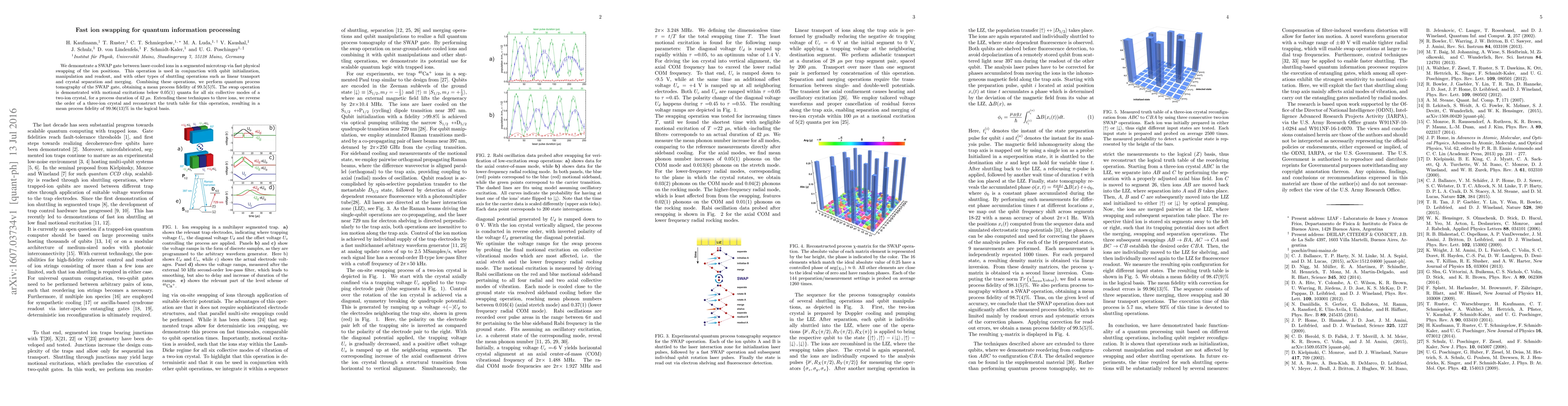 We demonstrate a SWAP gate between laser-cooled ions in a segmented microtrap via fast physical swapping of the ion positions. This operation is used in conjunction with qubit initialization, manipulation and readout, and with other types of shuttling operations such as linear transport and crystal separation and merging. Combining these operations, we perform quantum process tomography of the SWAP gate, obtaining a mean process fidelity of 99.5(5)\%. The swap operation is demonstrated with motional excitations below 0.05(1)~quanta for all six collective modes of a two-ion crystal, for a process duration of 42~$\mu$s. Extending these techniques to three ions, we reverse the order of a three-ion crystal and reconstruct the truth table for this operation, resulting in a mean process fidelity of 99.96(13)\% in the logical basis.
