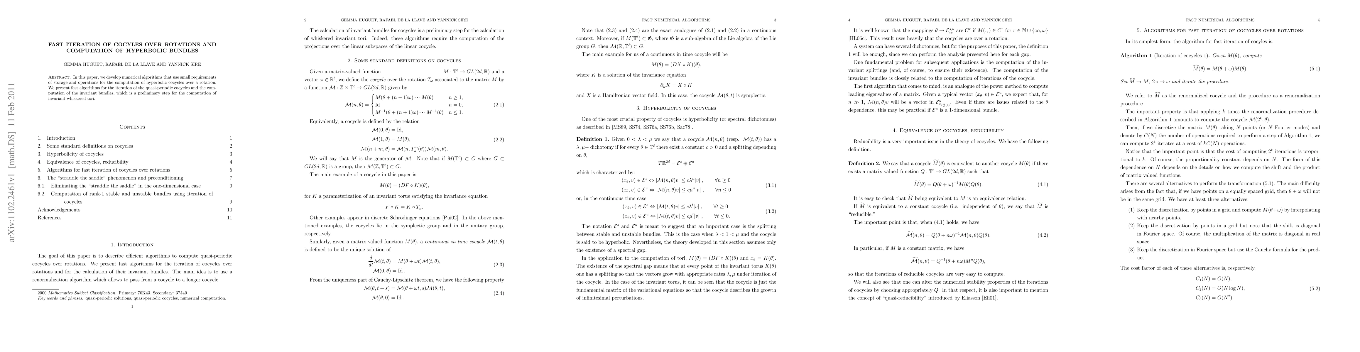 Summary: This paper introduces efficient numerical algorithms for computing hyperbolic cocycles over rotations with minimal storage and operational needs, focusing on fast iteration of quasi-periodic cocycles and the computation of invariant bundles, crucial for determining invariant whiskered tori.
