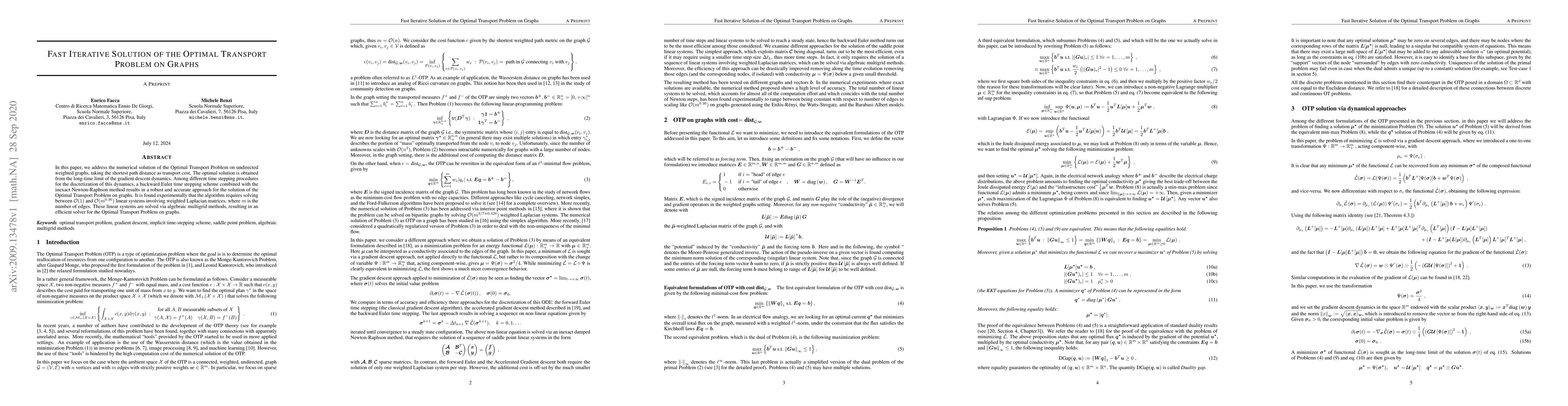 This paper proposes a robust and accurate iterative method for solving the Optimal Transport Problem on undirected weighted graphs using a backward Euler time stepping scheme and inexact Newton-Raphson method. The algorithm efficiently solves linear systems via algebraic multigrid methods, requiring between $\mathcal{O}(1)$ and $\mathcal{O}(M^{0.36})$ such systems, where $M$ is the number of edges.