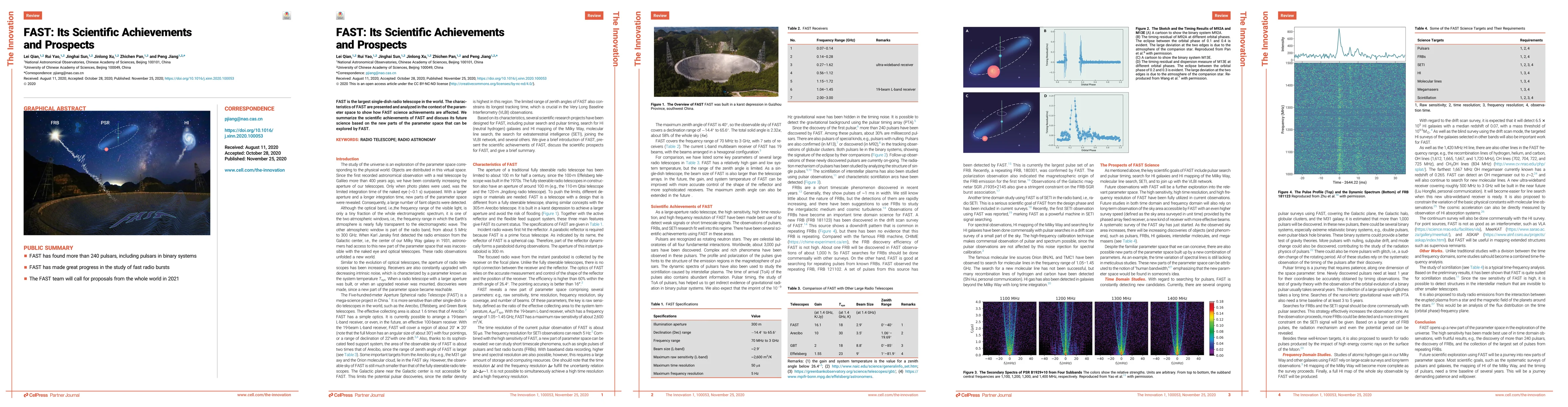FAST is the largest single-dish radio telescope in the world. The characteristics of FAST are presented and analyzed in the context of the parameter space to show how FAST science achievements are affected. We summarize the scientific achievements of FAST and discuss its future science based on the new parts of the parameter space that can be explored by FAST.