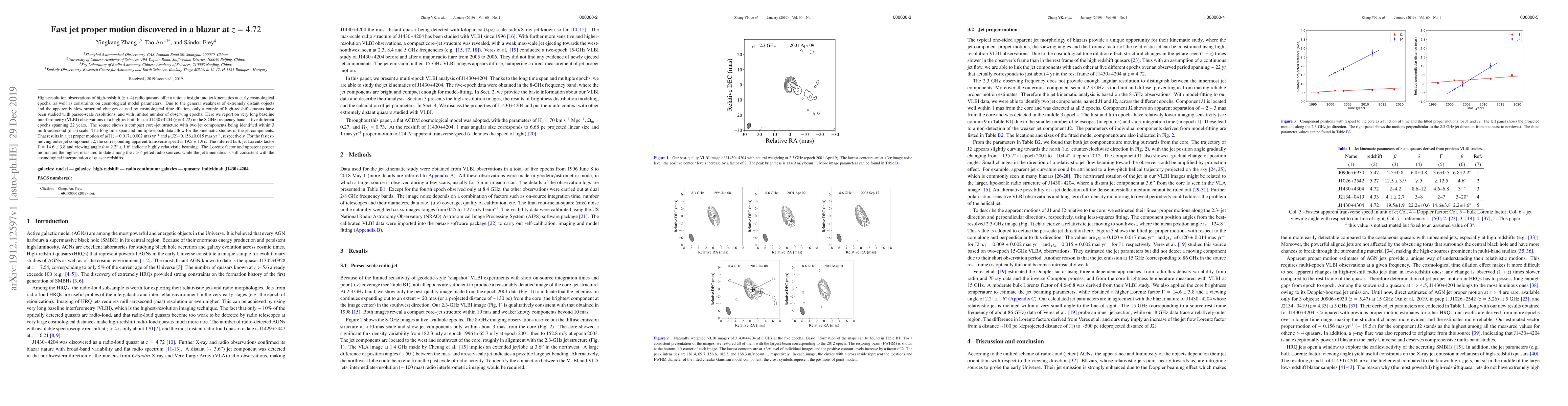 High-resolution observations of high-redshift ($z>4$) radio quasars offer a unique insight into jet kinematics at early cosmological epochs, as well as constraints on cosmological model parameters. Due to the general weakness of extremely distant objects and the apparently slow structural changes caused by cosmological time dilation, only a couple of high-redshift quasars have been studied with parsec-scale resolutions, and with limited number of observing epochs. Here we report on very long baseline interferometry (VLBI) observations of a high-redshift blazar J1430+4204 ($z=4.72$) in the 8 GHz frequency band at five different epochs spanning 22 years. The source shows a compact core--jet structure with two jet components being identified within 3 milli-arcsecond (mas) scale. The long time span and multiple-epoch data allow for the kinematic studies of the jet components. That results in a jet proper motion of $\mu {\rm (J1)}$ = 0.017$\pm$0.002~mas\,yr$^{-1}$ and $\mu({\rm J2})$=0.156$\pm$0.015~mas\,yr$^{-1}$, respectively. For the fastest-moving outer jet component J2, the corresponding apparent transverse speed is $19.5 \pm 1.9 \,c$. The inferred bulk jet Lorentz factor $\Gamma = 14.6 \pm 3.8$ and viewing angle $\theta = 2.2^{\circ} \pm 1.6^{\circ}$ indicate highly relativistic beaming. The Lorentz factor and apparent proper motion are the highest measured to date among the $z>4$ jetted radio sources, while the jet kinematics is still consistent with the cosmological interpretation of quasar redshifts.