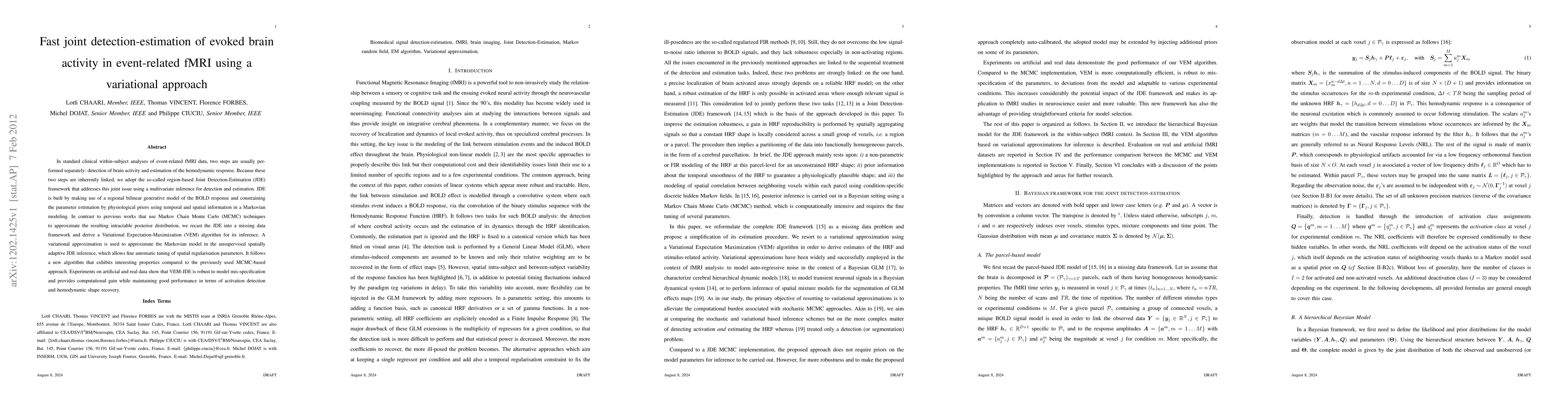 In standard clinical within-subject analyses of event-related fMRI data, two steps are usually performed separately: detection of brain activity and estimation of the hemodynamic response. Because these two steps are inherently linked, we adopt the so-called region-based Joint Detection-Estimation (JDE) framework that addresses this joint issue using a multivariate inference for detection and estimation. JDE is built by making use of a regional bilinear generative model of the BOLD response and constraining the parameter estimation by physiological priors using temporal and spatial information in a Markovian modeling. In contrast to previous works that use Markov Chain Monte Carlo (MCMC) techniques to approximate the resulting intractable posterior distribution, we recast the JDE into a missing data framework and derive a Variational Expectation-Maximization (VEM) algorithm for its inference. A variational approximation is used to approximate the Markovian model in the unsupervised spatially adaptive JDE inference, which allows fine automatic tuning of spatial regularisation parameters. It follows a new algorithm that exhibits interesting properties compared to the previously used MCMC-based approach. Experiments on artificial and real data show that VEM-JDE is robust to model mis-specification and provides computational gain while maintaining good performance in terms of activation detection and hemodynamic shape recovery.