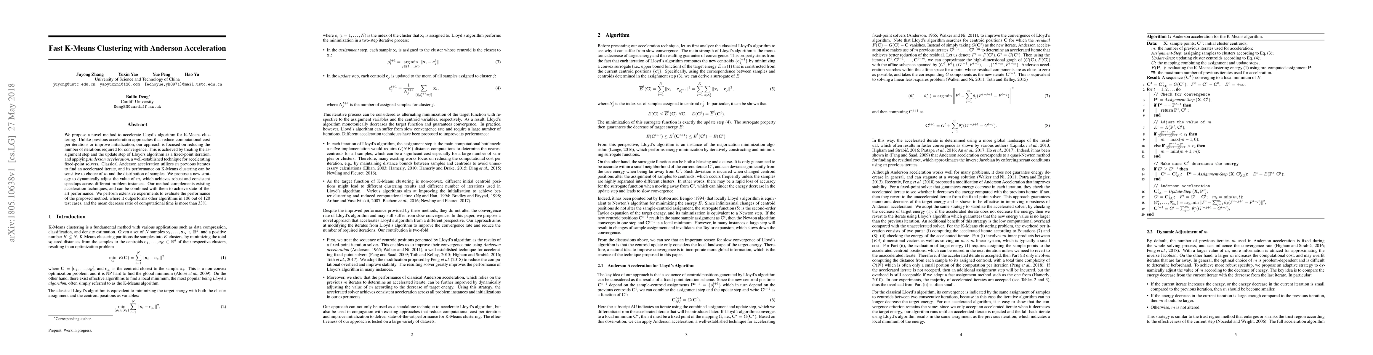 This paper proposes a novel method to accelerate K-Means clustering using Anderson acceleration to reduce the number of iterations for convergence. The dynamic adjustment of the number of previous iterates used in Anderson acceleration achieves robust performance improvements across various problem instances.