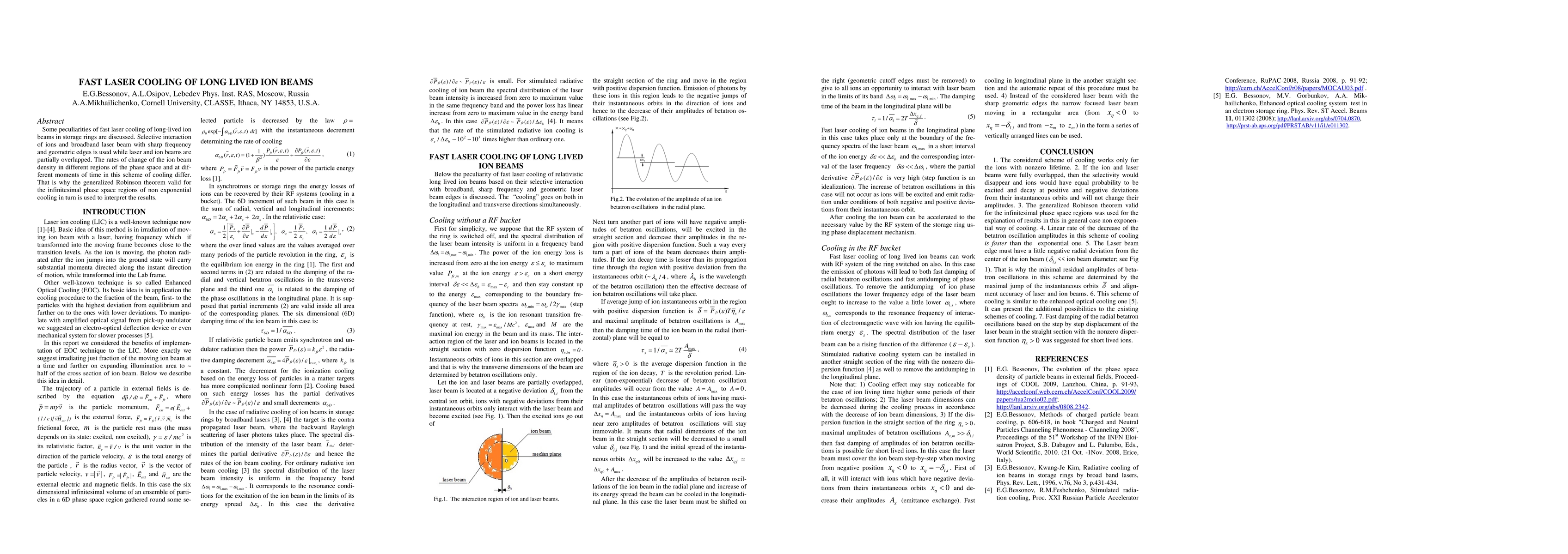 This paper discusses the fast laser cooling of long-lived ion beams in storage rings using selective interaction with a broadband laser beam. The study employs a generalized Robinson theorem to interpret the varying rates of change in ion beam density across different regions of phase space.