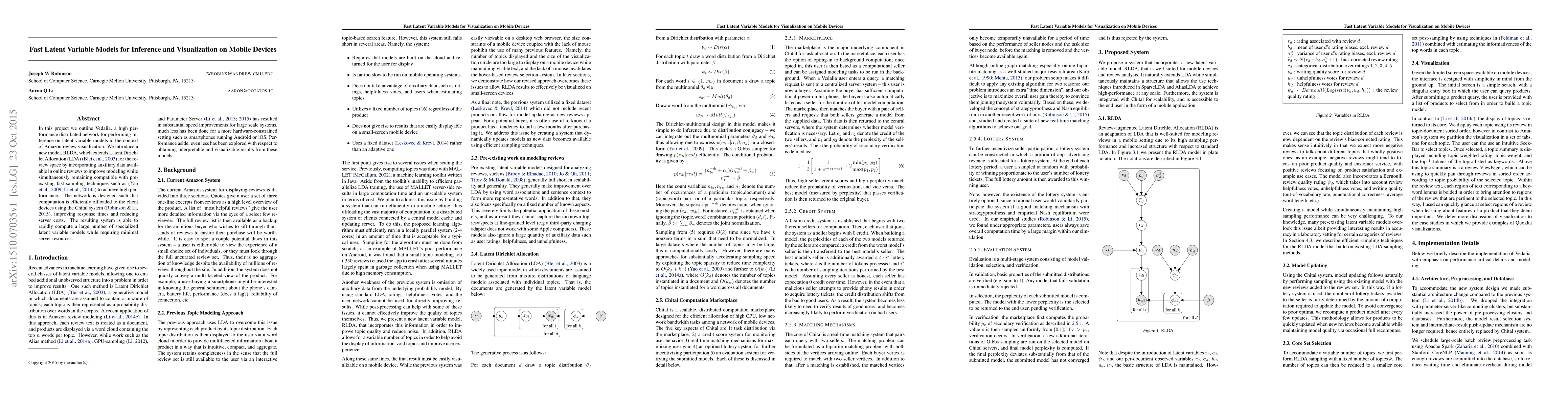 This paper introduces Vedalia, a high-performance distributed network for fast inference on latent variable models using the RLDA extension of LDA, optimized for mobile devices. The Chital system offloads computation to clients, achieving rapid response times and reducing server costs.