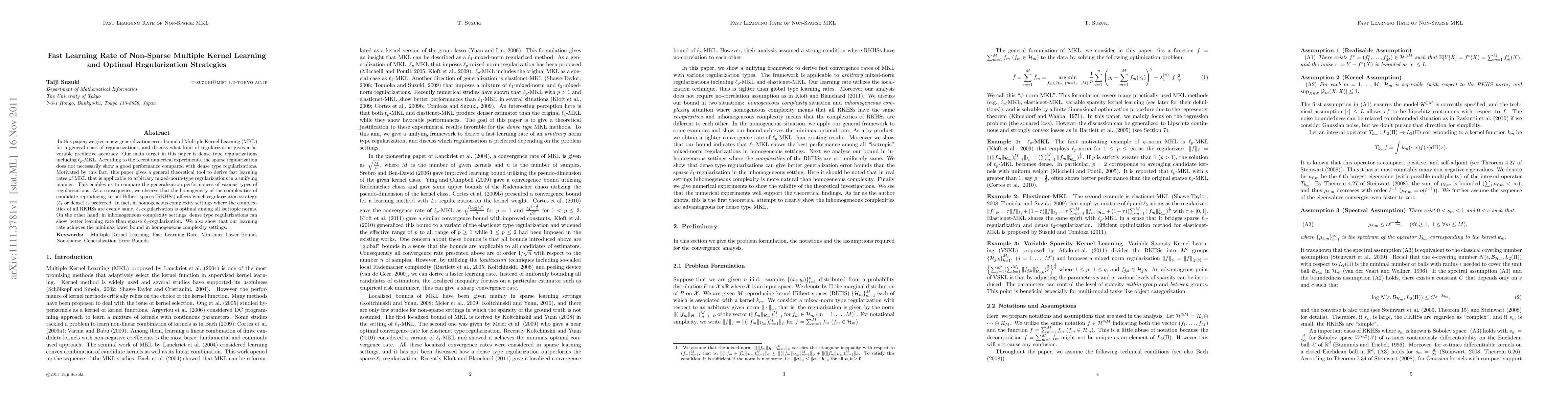 In this paper, we give a new generalization error bound of Multiple Kernel Learning (MKL) for a general class of regularizations, and discuss what kind of regularization gives a favorable predictive accuracy. Our main target in this paper is dense type regularizations including \ellp-MKL. According to the recent numerical experiments, the sparse regularization does not necessarily show a good performance compared with dense type regularizations. Motivated by this fact, this paper gives a general theoretical tool to derive fast learning rates of MKL that is applicable to arbitrary mixed-norm-type regularizations in a unifying manner. This enables us to compare the generalization performances of various types of regularizations. As a consequence, we observe that the homogeneity of the complexities of candidate reproducing kernel Hilbert spaces (RKHSs) affects which regularization strategy (\ell1 or dense) is preferred. In fact, in homogeneous complexity settings where the complexities of all RKHSs are evenly same, \ell1-regularization is optimal among all isotropic norms. On the other hand, in inhomogeneous complexity settings, dense type regularizations can show better learning rate than sparse \ell1-regularization. We also show that our learning rate achieves the minimax lower bound in homogeneous complexity settings.