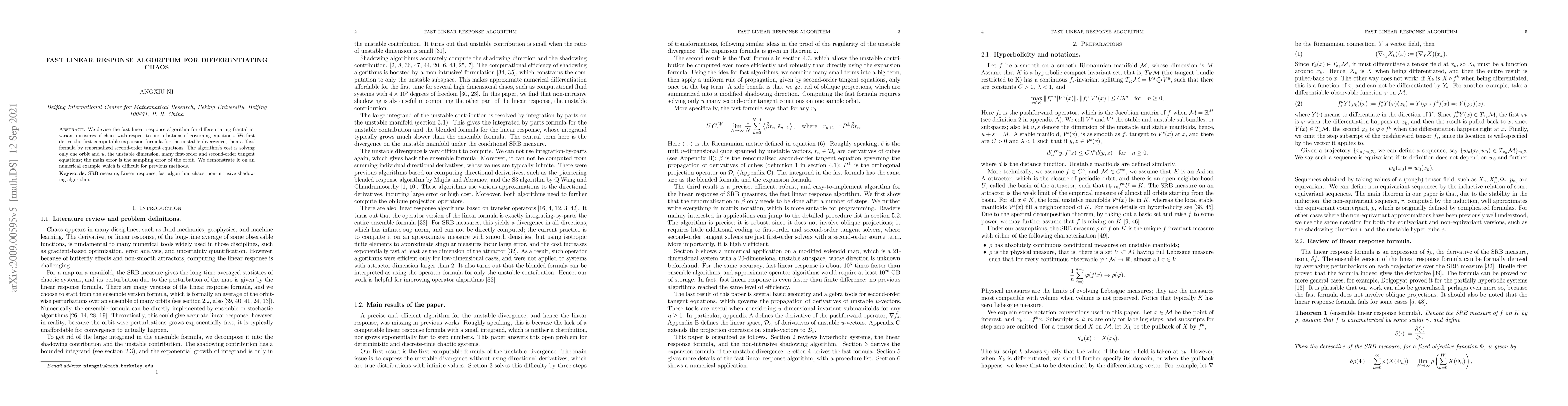 A new algorithm for differentiating chaos in complex systems is proposed, using a fast linear response approach to accurately calculate divergence without needing to solve the full governing equations. The algorithm is demonstrated on a challenging numerical example and shows promise for improving existing methods.
