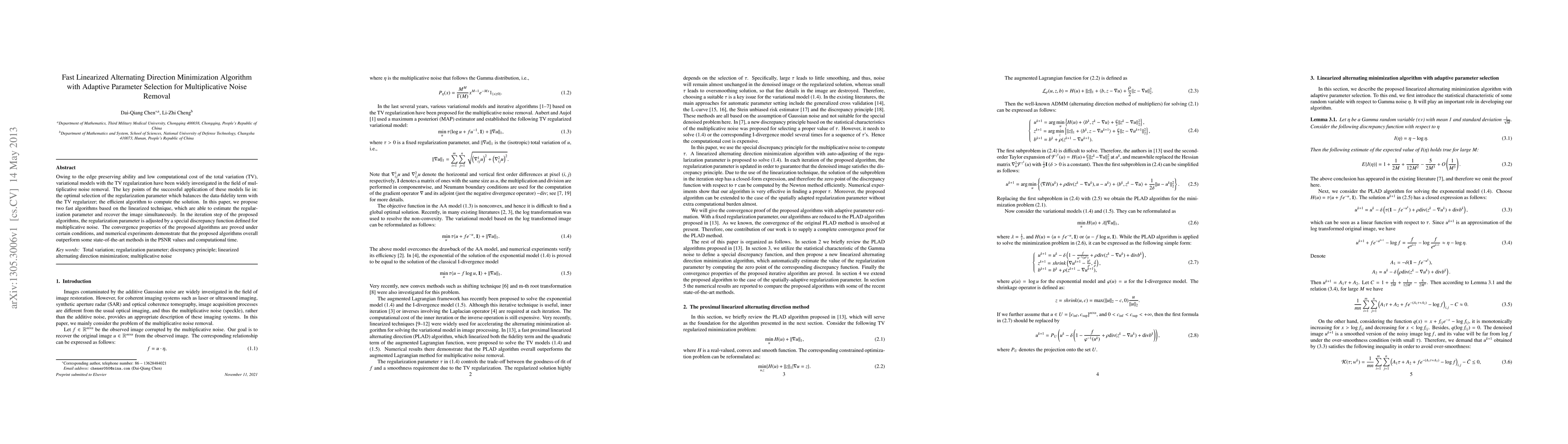 This paper proposes two fast algorithms for multiplicative noise removal that balance data-fidelity and regularization parameter selection using a discrepancy function, achieving better PSNR values and computational time compared to state-of-the-art methods.