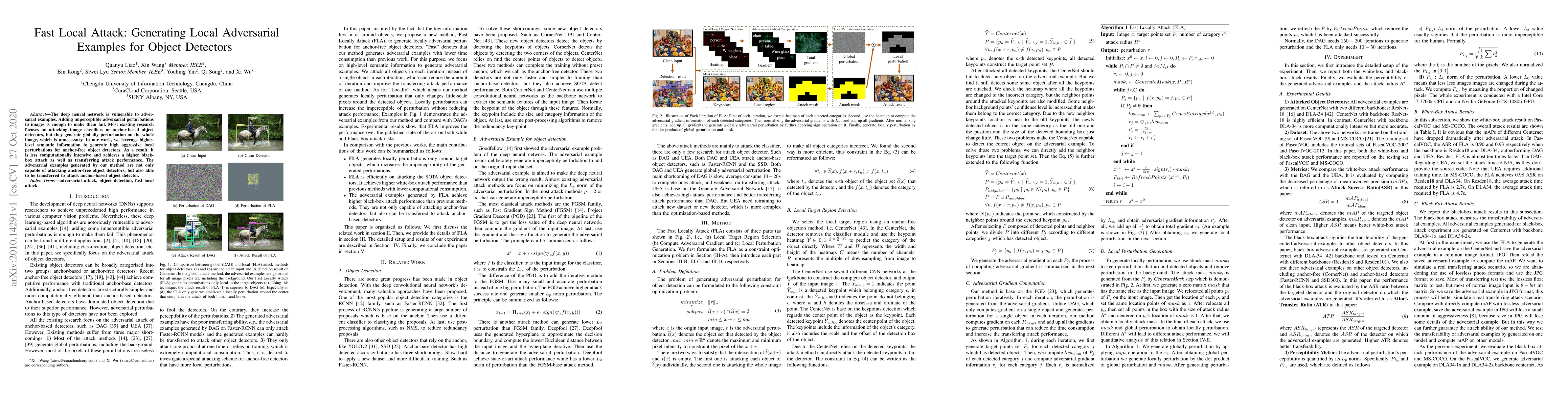 This paper introduces a method for generating local adversarial examples to attack anchor-free object detectors, leveraging higher-level semantic information for more efficient and aggressive perturbations. The method also demonstrates effective transferability to anchor-based detectors.