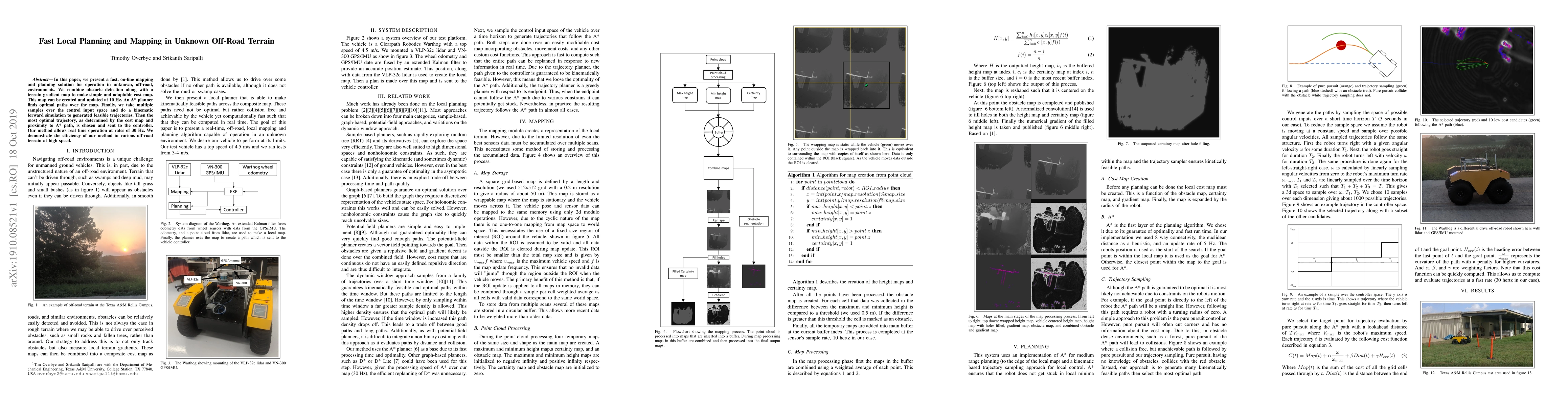 This research paper presents a fast on-line mapping and planning solution for navigating unknown off-road terrain at high speeds, achieving real-time operation rates of 30 Hz.