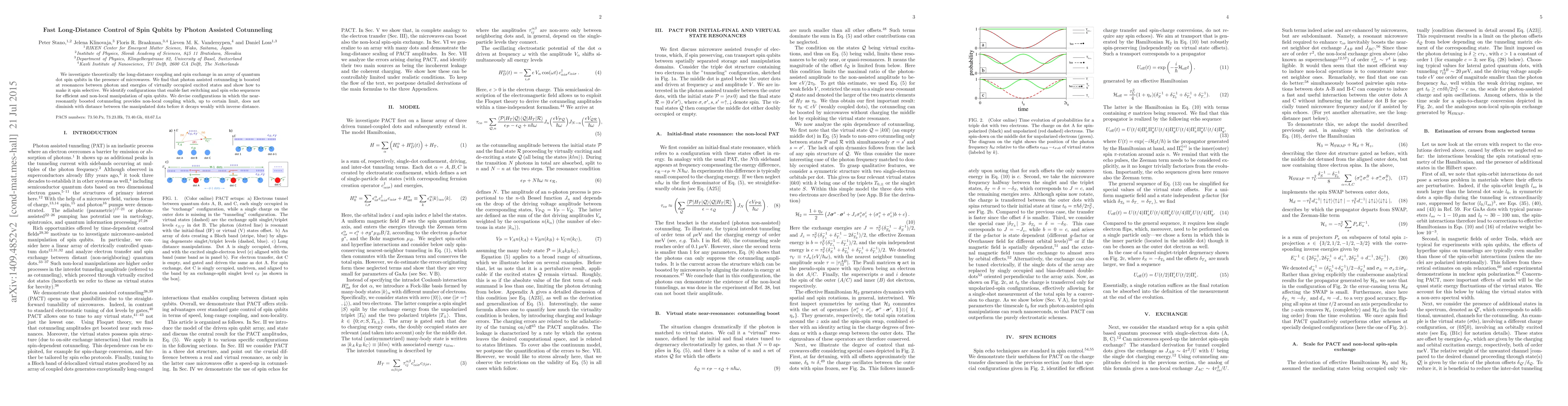 This paper theoretically explores the use of photon assisted cotunneling to achieve long-distance control of spin qubits in quantum dot arrays, demonstrating spin-selective coupling and identifying configurations for efficient, non-local manipulation that maintains coupling strength over distance before weak decay.