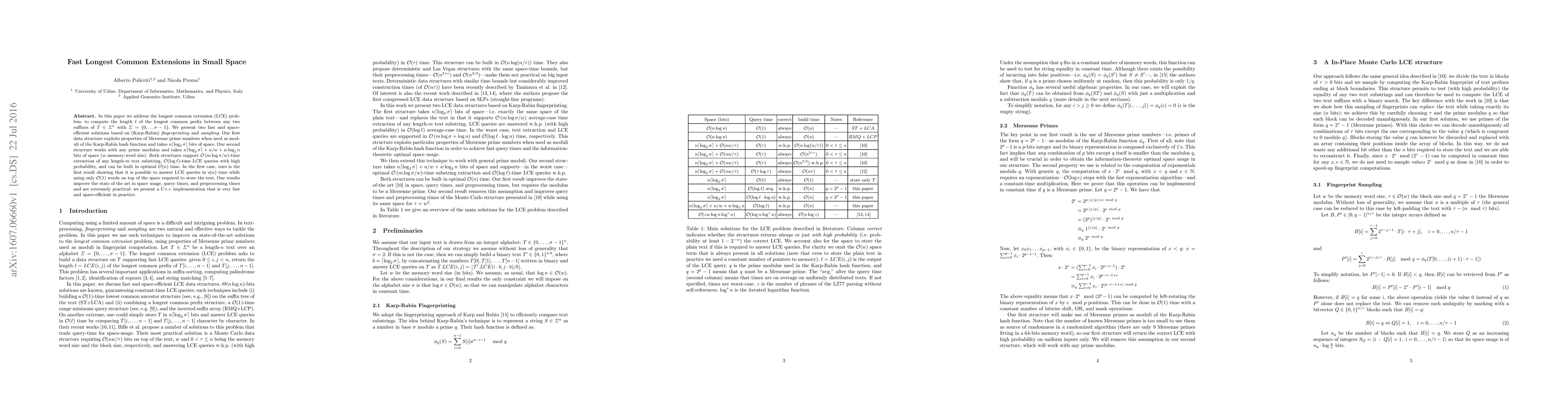 The paper presents two fast and space-efficient solutions for the longest common extension (LCE) problem using Karp-Rabin fingerprinting and sampling techniques, leveraging properties of Mersenne and general prime numbers.