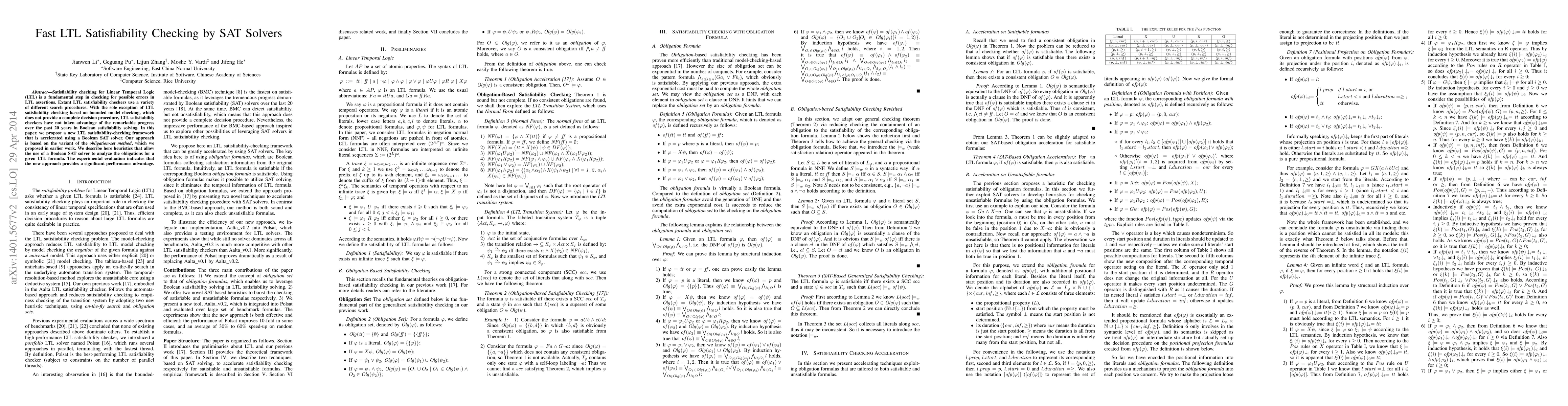 A fully-SAT-based LTL-satisfiability-checking approach is proposed