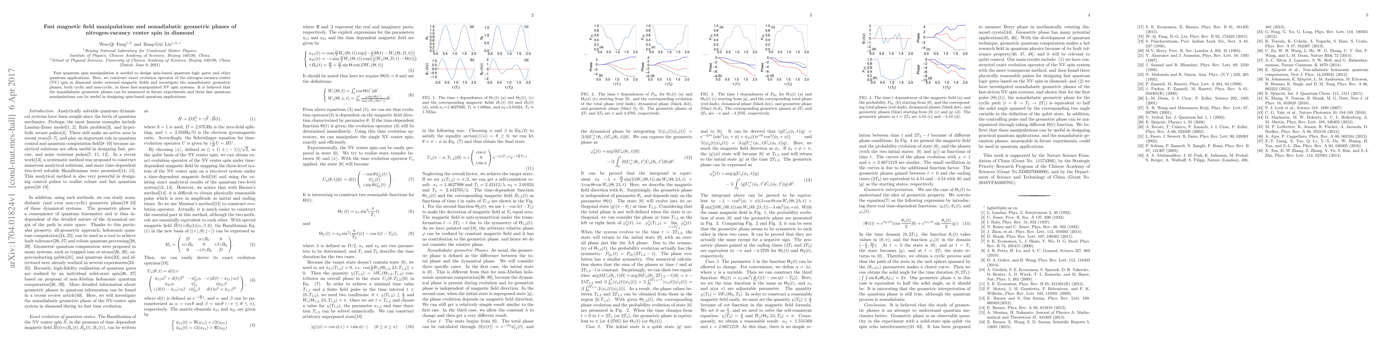 This paper constructs the exact evolution operator for nitrogen-vacancy center spins in diamond under rapid magnetic field manipulations and explores both cyclic and non-cyclic nonadiabatic geometric phases. The findings suggest potential applications in designing spin-based quantum logic gates and other quantum technologies.
