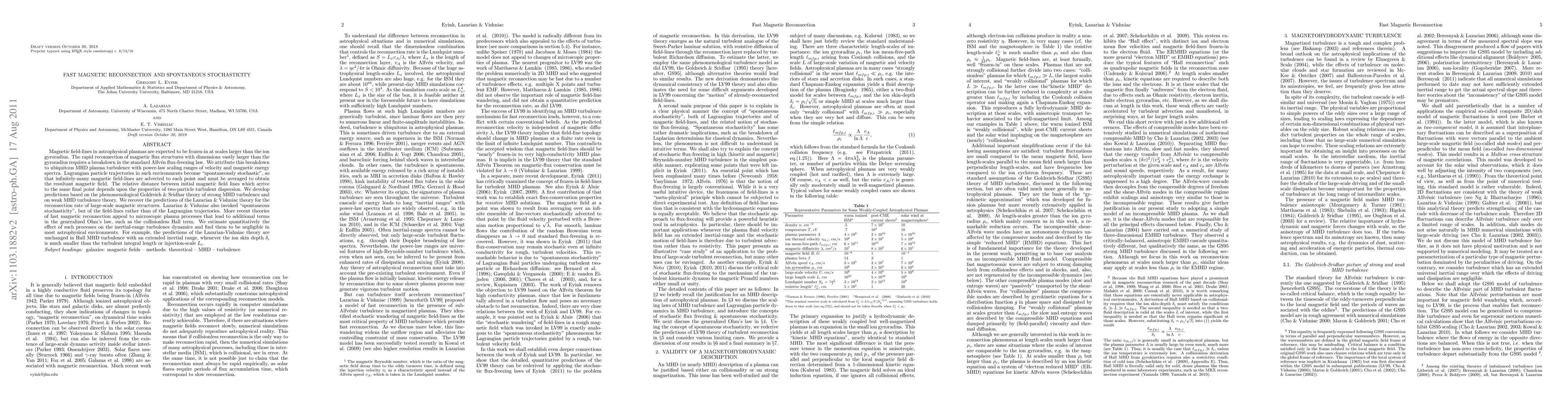 This paper investigates rapid magnetic reconnection in astrophysical plasmas, attributing it to MHD turbulence that breaks the standard Alfvén flux-freezing law. It shows that Lagrangian particle trajectories in turbulent environments become "spontaneously stochastic," necessitating averaging of infinitely many advected magnetic field lines.