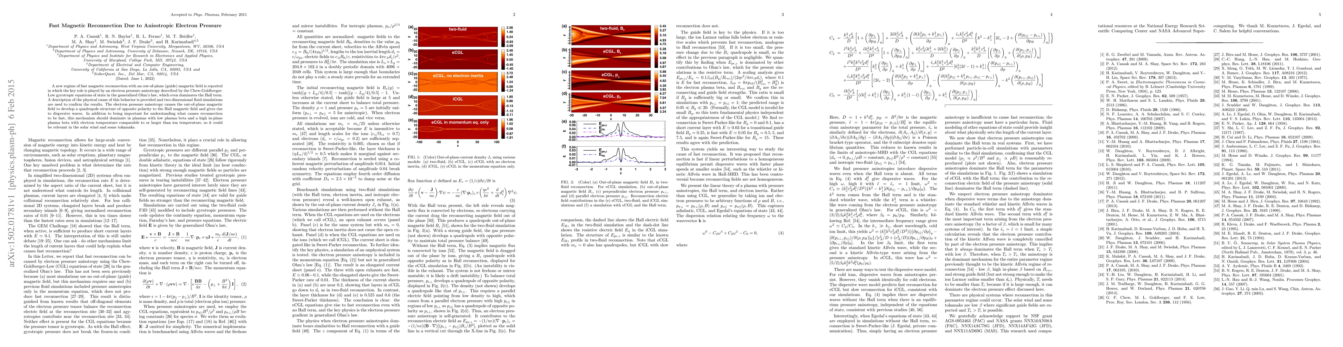 This paper reports a new regime of fast magnetic reconnection driven by anisotropic electron pressure, which dominates the Hall term and leads to a quadrupole structure in the out-of-plane magnetic field. Simulations confirm the mechanism's significance, especially in plasmas with low beta and high in-plane beta, relevant to the solar wind and tokamaks.