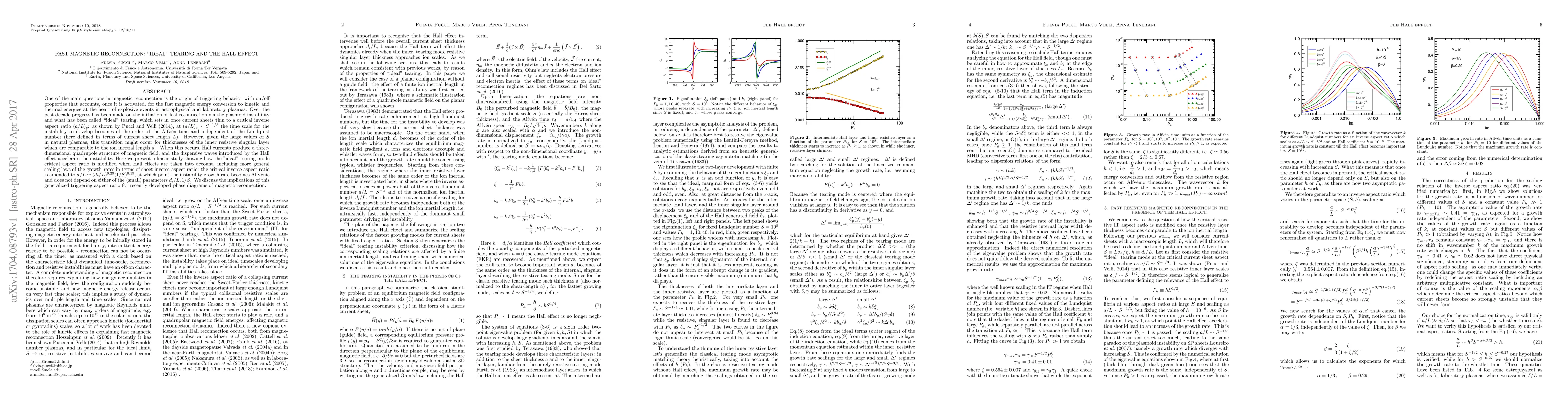 This paper investigates the triggering behavior of fast magnetic reconnection, focusing on "ideal" tearing and the Hall effect's role in modifying the critical aspect ratio. It finds that the inclusion of Hall currents leads to a modified critical aspect ratio and Alfvénic growth rates, independent of the small parameters $d_i/L$ and $1/S$.