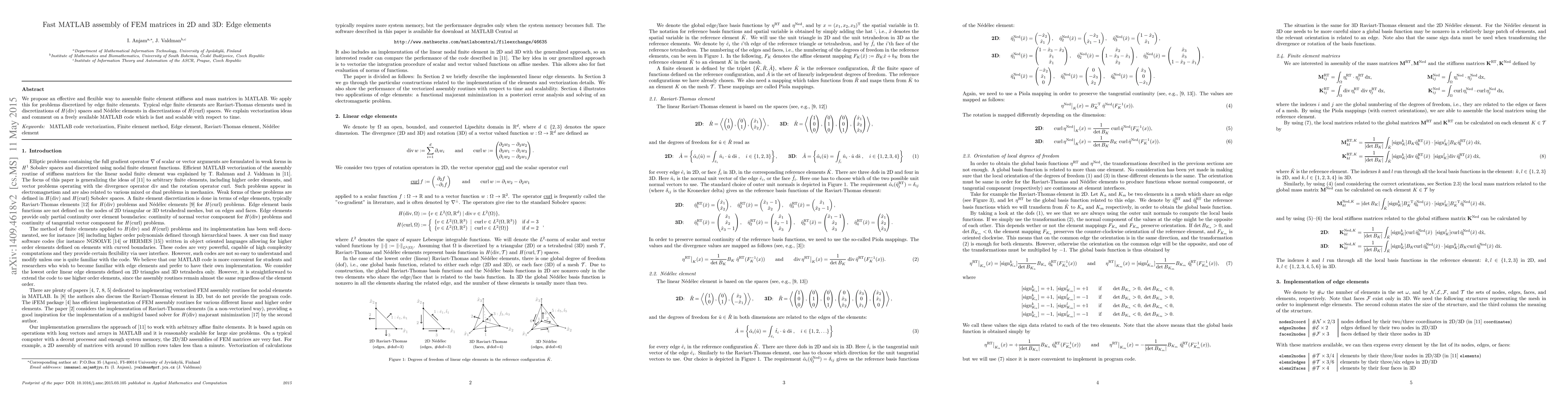 This paper presents a MATLAB-based method for efficiently assembling finite element matrices using edge elements, focusing on Raviart-Thomas and Nedelec elements. The proposed approach leverages vectorization techniques to achieve fast and scalable matrix assembly.