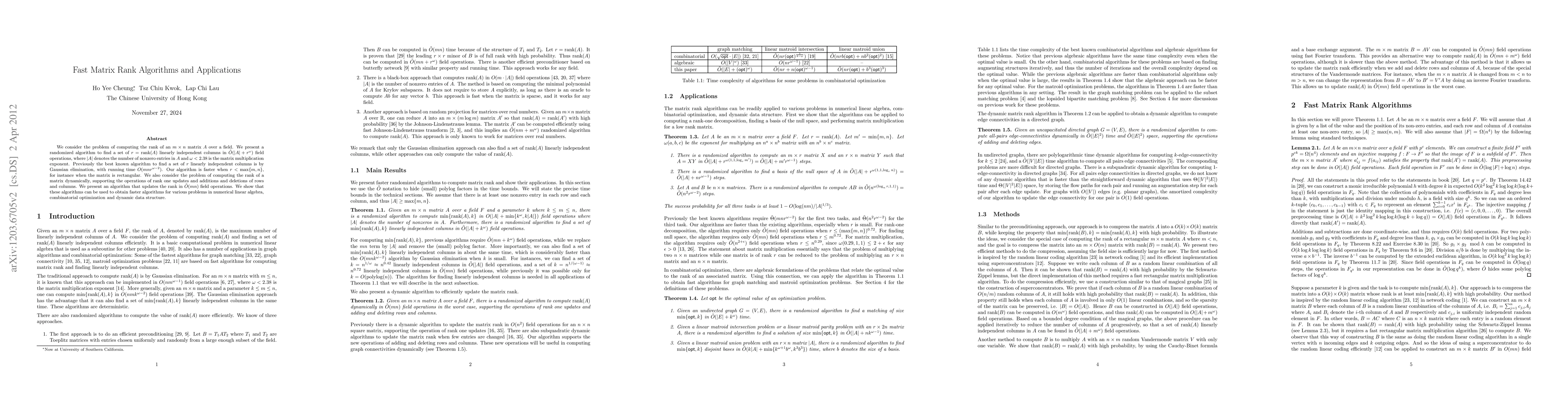 A new algorithm efficiently computes the rank of a matrix in O(|A| + r^{ heta}) operations, improving upon existing methods for large matrices, and has implications for faster algorithms in numerical linear algebra and combinatorial optimization.