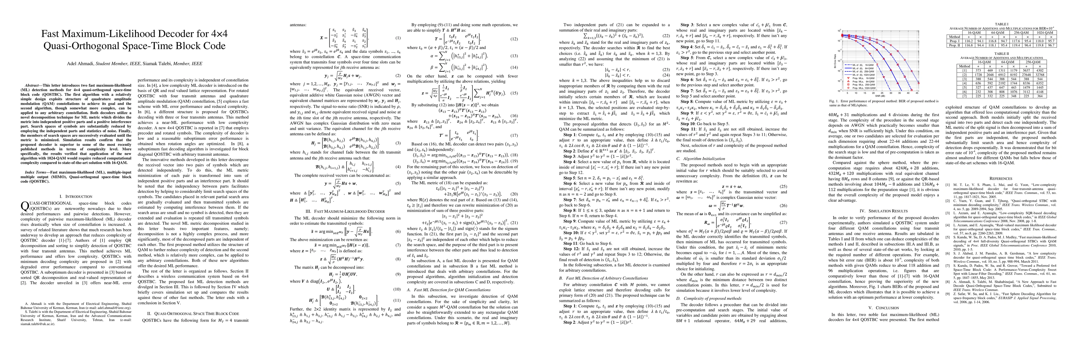This paper introduces two fast maximum-likelihood decoders for 4*4 quasi-orthogonal space-time block code that reduce computational complexity compared to existing methods, with improved performance over 16-QAM.