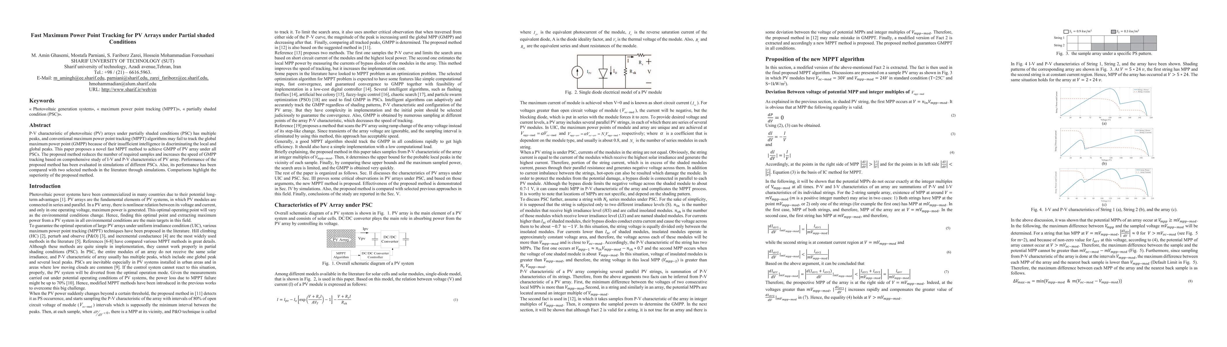 P-V characteristic of photovoltaic (PV) arrays under partially shaded conditions (PSC) has multiple peaks, and conventional maximum power point tracking (MPPT) algorithms may fail to track the global maximum power point (GMPP) because of their insufficient intelligence in discriminating the local and global peaks. This paper proposes a novel fast MPPT method to achieve GMPP of PV array under all PSCs. The proposed method reduces the number of required samples and increases the speed of GMPP tracking based on comprehensive study of I-V and P-V characteristics of PV array. Performance of the proposed method has been evaluated in simulations of different PSCs. Also, its performance has been compared with two selected methods in the literature through simulations. Comparisons highlight the superiority of the proposed method.