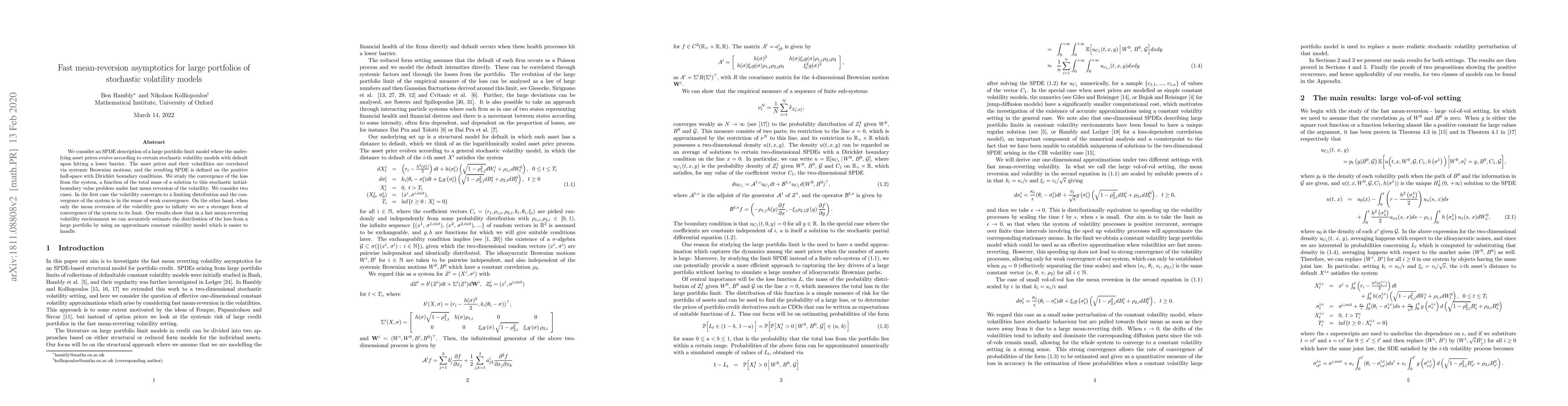This paper investigates the asymptotic behavior of large portfolios modeled by stochastic volatility systems under fast mean-reversion conditions. It demonstrates that in such scenarios, the loss distribution can be accurately estimated using a simpler constant volatility model, highlighting two convergence regimes based on volatility behavior.