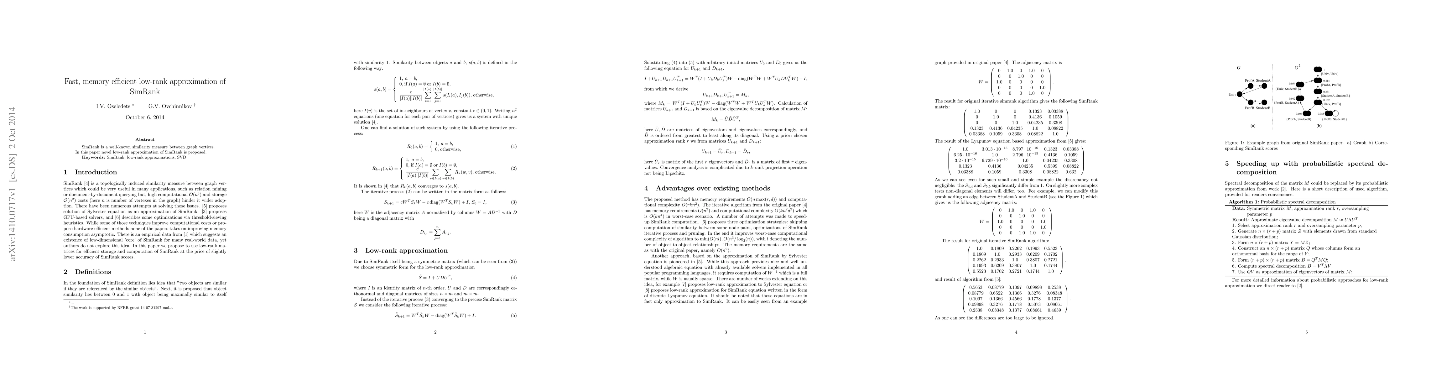 SimRank is a well-known similarity measure between graph vertices. In this paper novel low-rank approximation of SimRank is proposed.