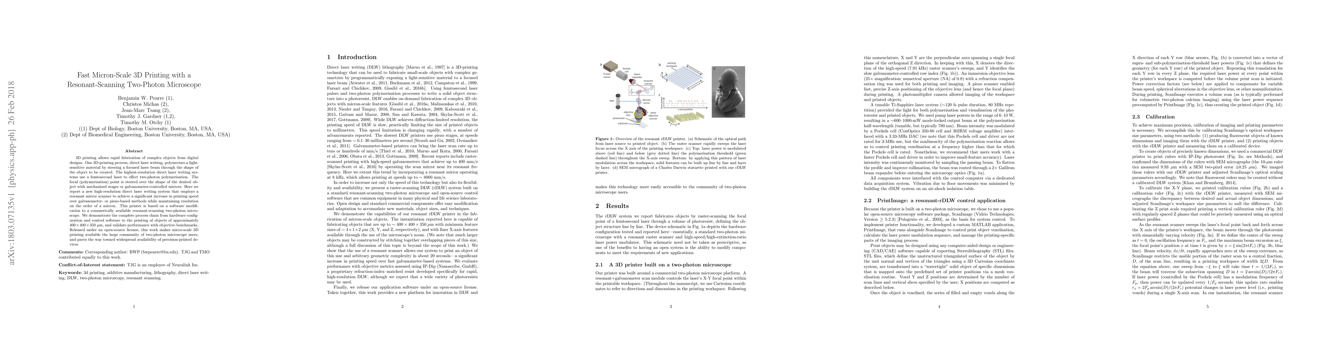 This paper presents a high-resolution, fast micron-scale 3D printing system using a resonant-scanning two-photon microscope, achieving significant speed improvements over traditional methods while maintaining micron-scale resolution. The open-source software and hardware modifications make this advanced printing technique accessible to a broader scientific community.