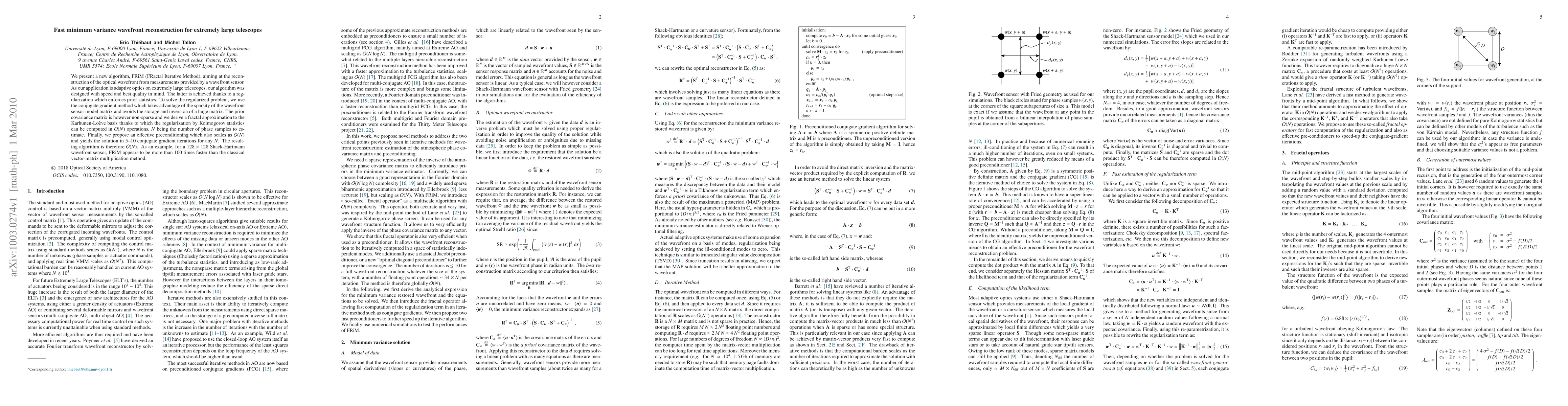 We present a new algorithm, FRiM (FRactal Iterative Method), aiming at the reconstruction of the optical wavefront from measurements provided by a wavefront sensor. As our application is adaptive optics on extremely large telescopes, our algorithm was designed with speed and best quality in mind. The latter is achieved thanks to a regularization which enforces prior statistics. To solve the regularized problem, we use the conjugate gradient method which takes advantage of the sparsity of the wavefront sensor model matrix and avoids the storage and inversion of a huge matrix. The prior covariance matrix is however non-sparse and we derive a fractal approximation to the Karhunen-Loeve basis thanks to which the regularization by Kolmogorov statistics can be computed in O(N) operations, N being the number of phase samples to estimate. Finally, we propose an effective preconditioning which also scales as O(N) and yields the solution in 5-10 conjugate gradient iterations for any N. The resulting algorithm is therefore O(N). As an example, for a 128 x 128 Shack-Hartmann wavefront sensor, FRiM appears to be more than 100 times faster than the classical vector-matrix multiplication method.