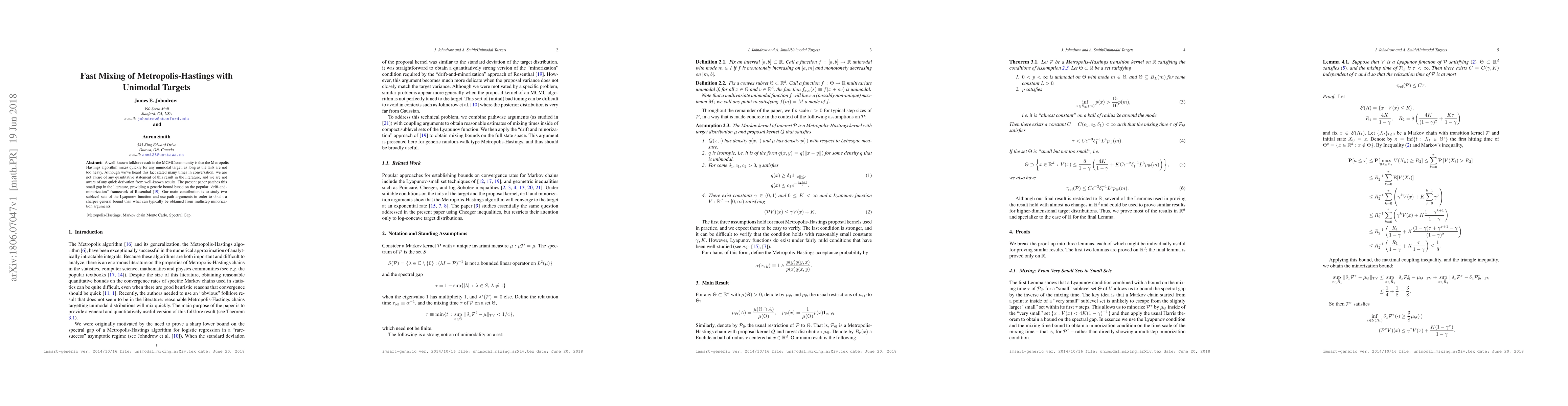 This paper provides a generic bound for the mixing speed of Metropolis-Hastings algorithms with unimodal targets, using a drift-and-minorization framework to obtain a sharper bound than typical multistep minorization arguments.