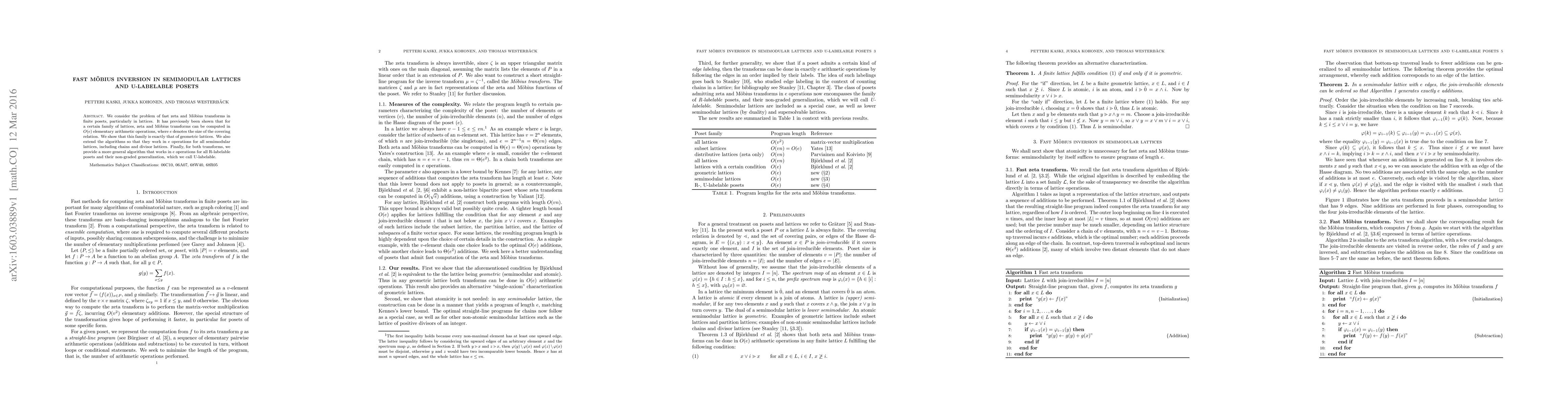 Researchers develop fast algorithms for zeta and M"obius transforms in semimodular lattices, reducing computational complexity to $O(e)$ operations, where $e$ is the size of the covering relation.