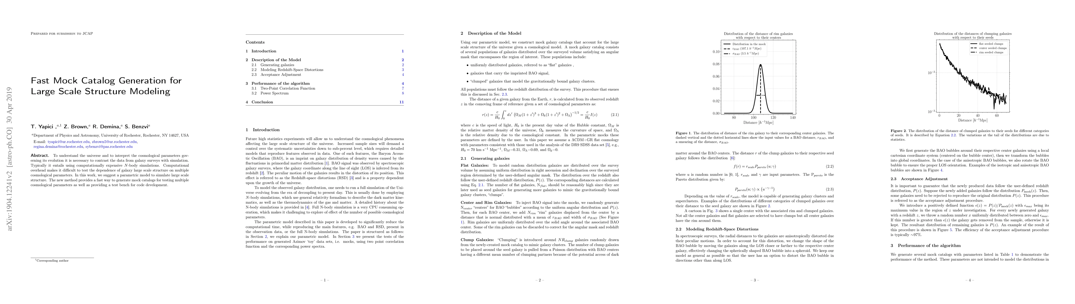 To understand the universe and to interpret the cosmological parameters governing its evolution it is necessary to contrast the data from galaxy surveys with simulation. Typically it entails using computationally expensive N -body simulations. Computational overhead makes it difficult to test the dependence of galaxy large scale structure on multiple cosmological parameters. In this work, we suggest a parametric model to simulate large scale structure. The new method provides a fast way to generate mock catalogs for testing multiple cosmological parameters as well as providing a test bench for code development.