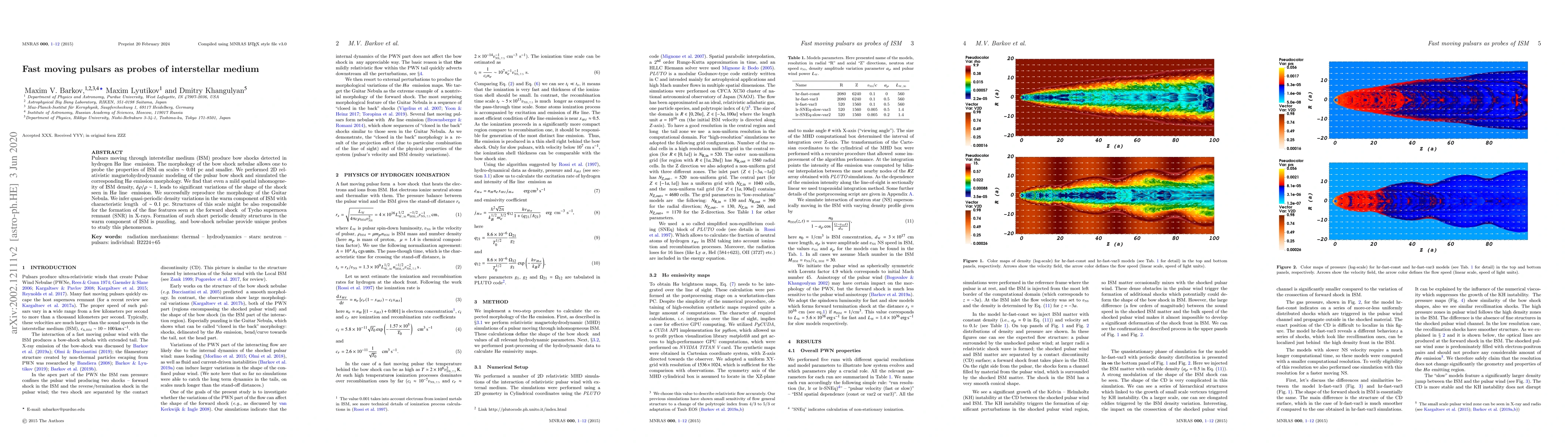 Pulsars moving through interstellar medium create bow shock nebulae that can probe ISM properties on small scales. Simulations reveal quasi-periodic density variations in the warm component of ISM with structures of 0.1 pc in length.