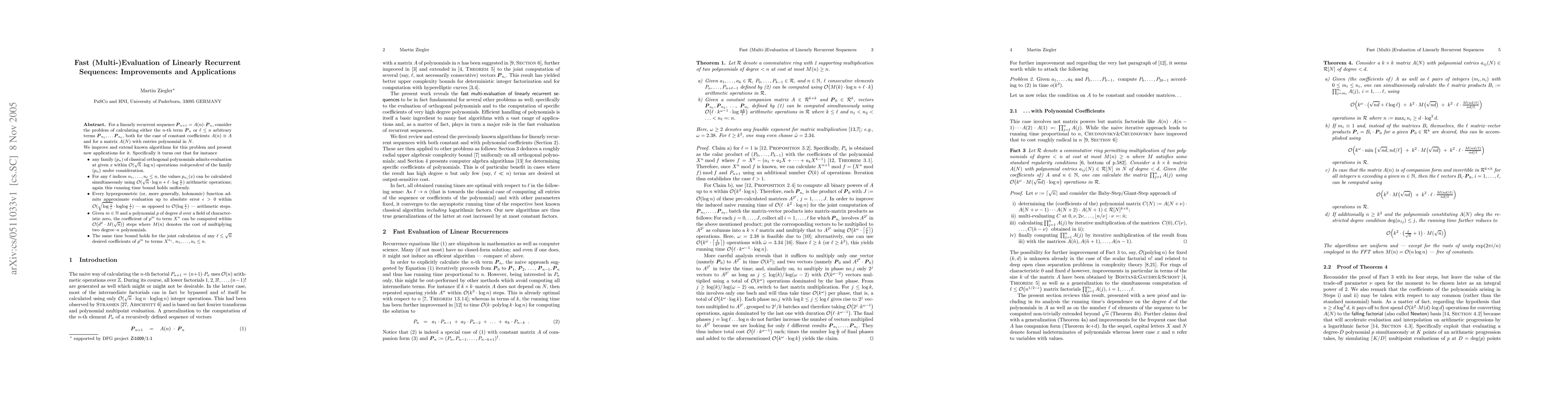 For a linearly recurrent vector sequence P[n+1] = A(n) * P[n], consider the problem of calculating either the n-th term P[n] or L<=n arbitrary terms P[n_1],...,P[n_L], both for the case of constant coefficients A(n)=A and for a matrix A(n) with entries polynomial in n. We improve and extend known algorithms for this problem and present new applications for it. Specifically it turns out that for instance * any family (p_n) of classical orthogonal polynomials admits evaluation at given x within O(n^{1/2} log n) operations INDEPENDENT of the family (p_n) under consideration. * For any L indices n_1,...,n_L <= n, the values p_{n_i}(x) can be calculated simultaneously using O(n^{1/2} log n + L log(n/L)) arithmetic operations; again this running time bound holds uniformly. * Every hypergeometric (or, more generally, holonomic) function admits approximate evaluation up to absolute error e>0 within O((log(1/e)^{1/2} loglog(1/e)) -- as opposed to O(log(1/e)) -- arithmetic steps. * Given m and a polynomial p of degree d over a field of characteristic zero, the coefficient of p^m to term X^n can be computed within O(d^2 M(n^{1/2})) steps where M(n) denotes the cost of multiplying two degree-n polynomials. * The same time bound holds for the joint calculation of any L<=n^{1/2} desired coefficients of p^m to terms X^{n_i}, n_1,...,n_L <= n.