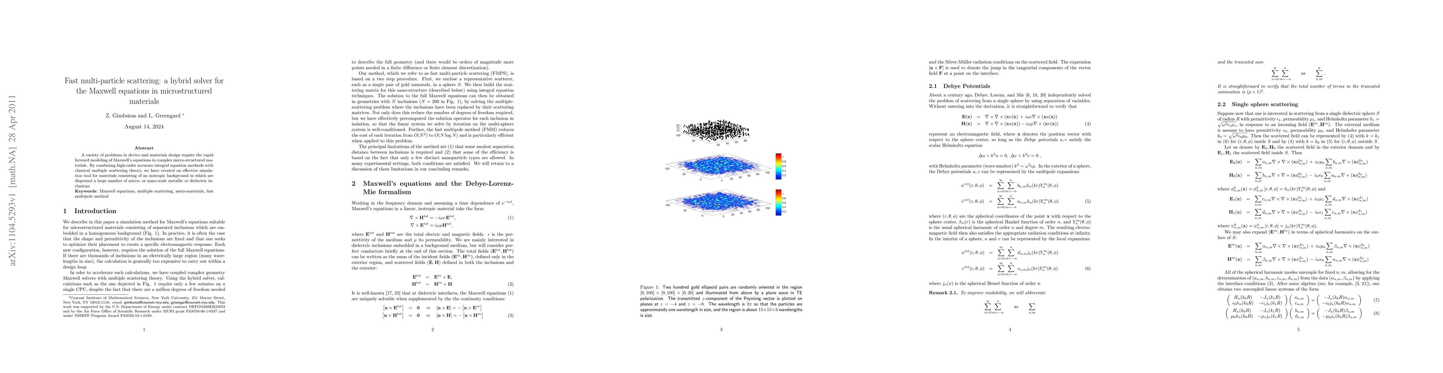 A variety of problems in device and materials design require the rapid forward modeling of Maxwell's equations in complex micro-structured materials. By combining high-order accurate integral equation methods with classical multiple scattering theory, we have created an effective simulation tool for materials consisting of an isotropic background in which are dispersed a large number of micro- or nano-scale metallic or dielectric inclusions.